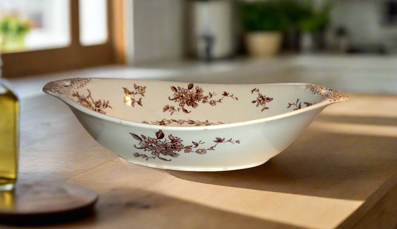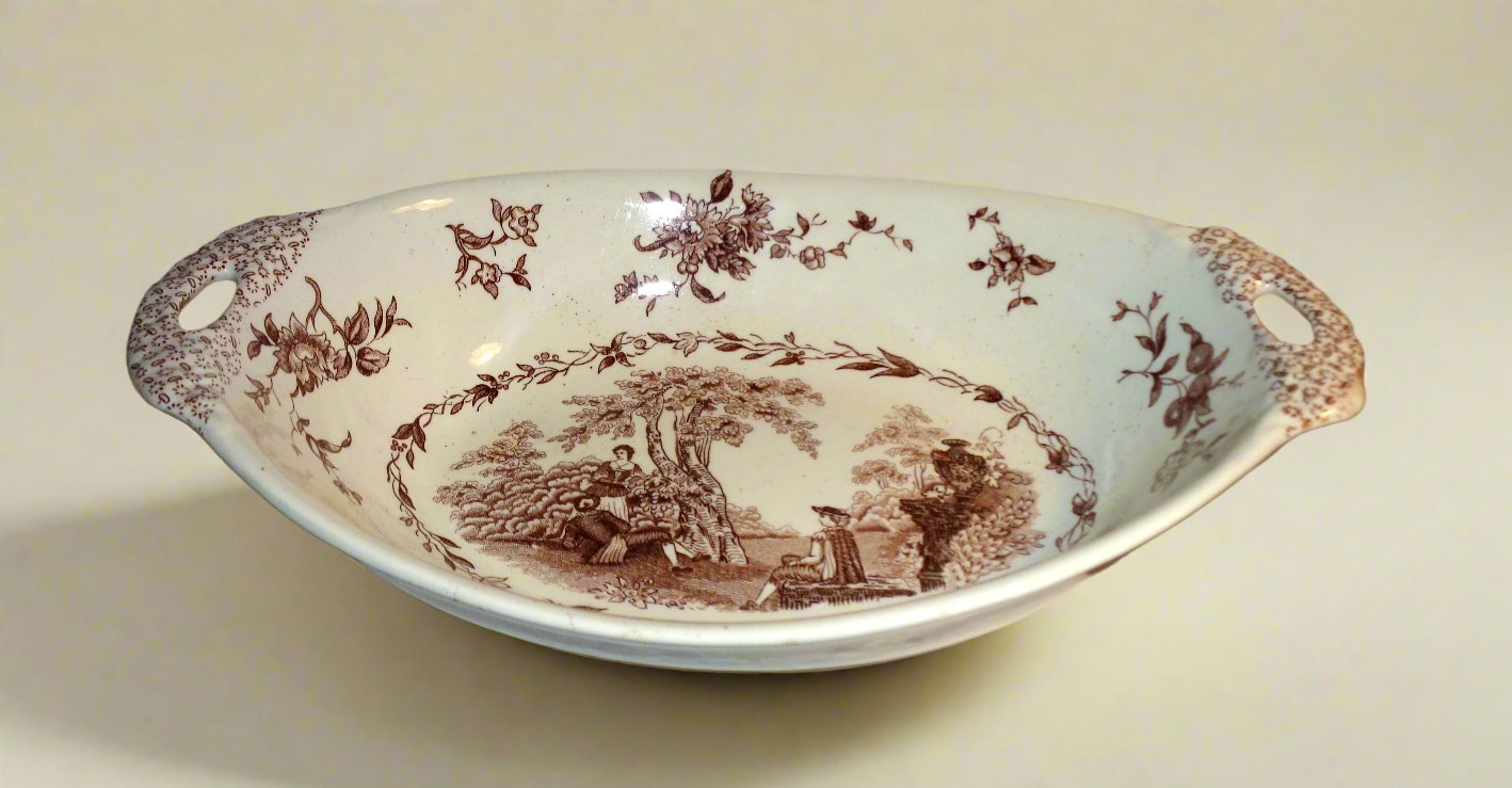 1920s Mason's Ironstone Watteau Brown Two Handled Serving Dish