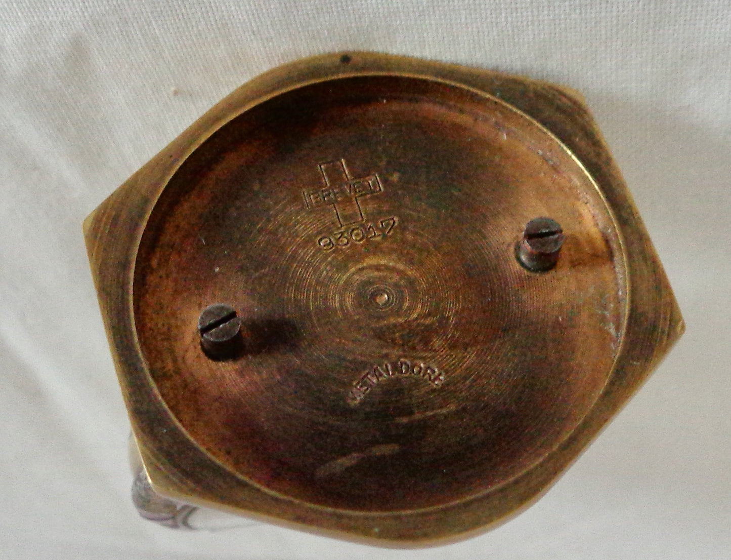 The clock is marked on the base "Brevet, 93017 Metaldore Th. Jequier Swiss."