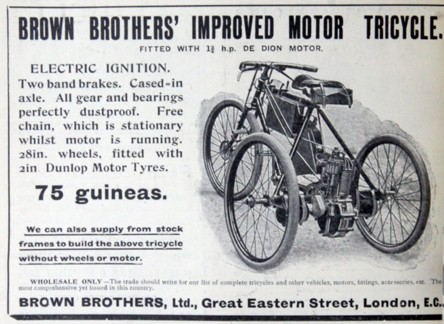 Brown Brothers Limited (BBL) was founded in 1889 in Great Eastern Street, London, UK as a manufacturer and wholesaler of bicycles (Vindec) and parts, for example, Bronco. They diversified over the years to include motor cars (e.g. Talmo and Duco accessories), motorcycles, aircraft, and radio. A huge company over the years, a bit like a modern day RS components, in 1989 they became part of Dana Incorporated before being subsumed into Partco in the 1990s.
