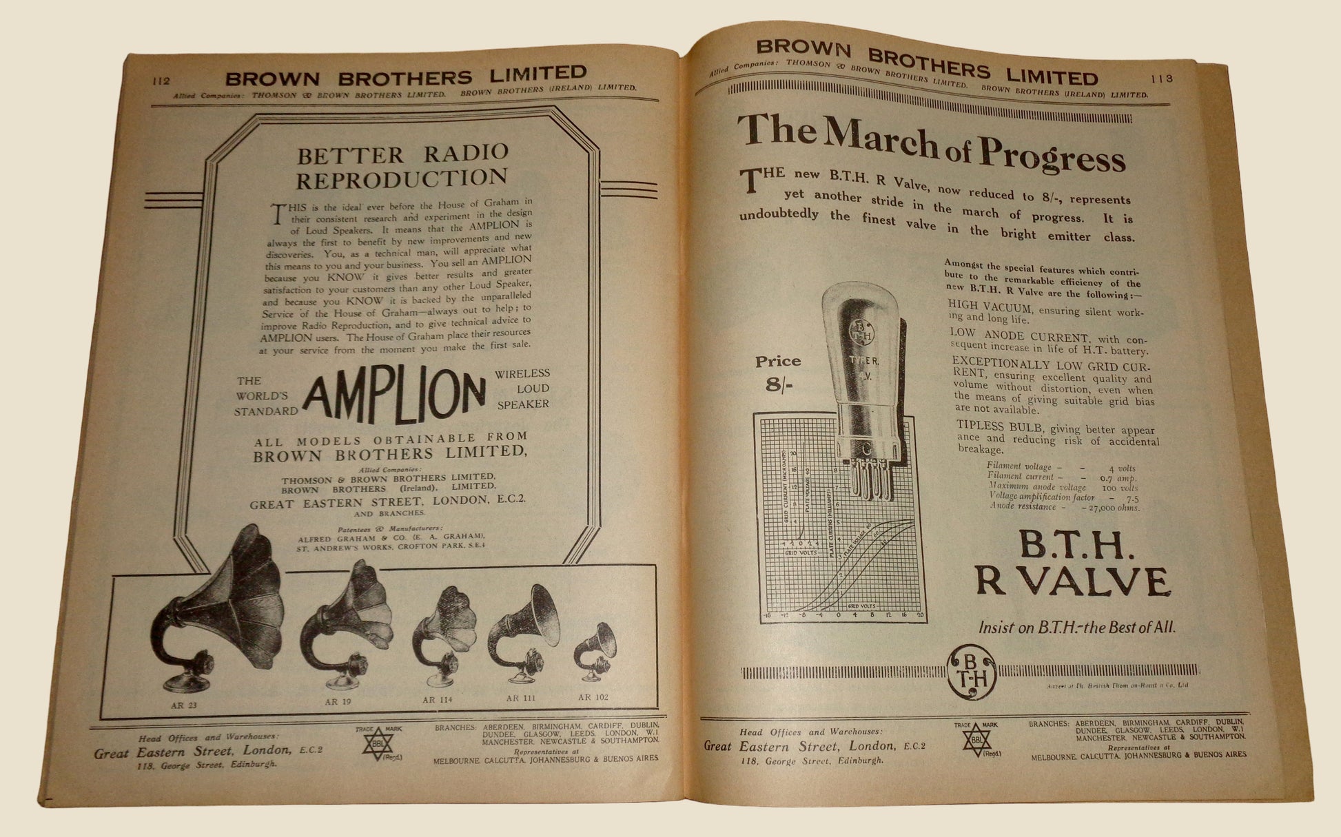 A soft back / paperback catalogue comprising 124 pages of radio related products supplied by Brown Brothers in the 1920s, including items from Marconi, Ever Ready, Siemens, amongst others. A piece of wireless radio history and history of BBL!