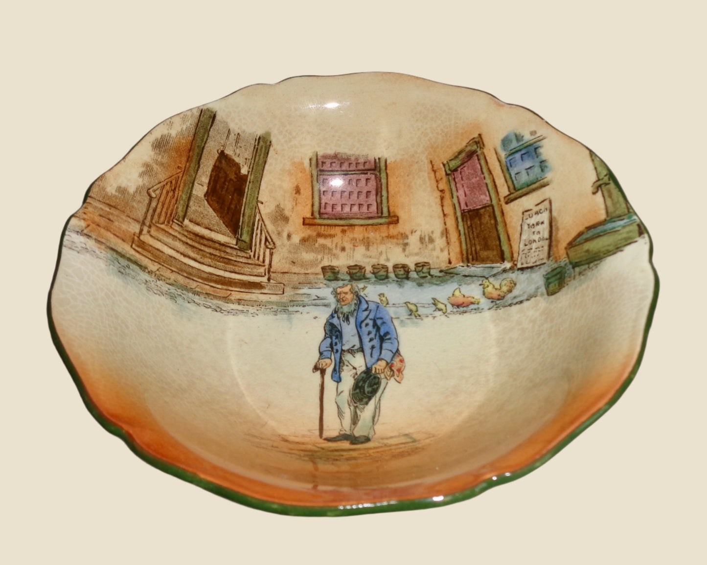 1930s Royal Doulton Dickens Ware Old Peggoty 6 Inch Dessert Bowl. Pattern Number D2973
