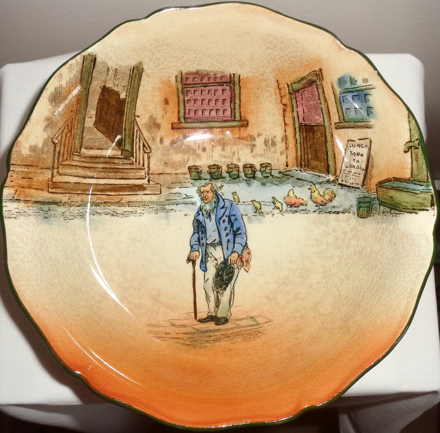 The fluted dish is beautifully printed with a street scene including the character ‘Old Peggoty' from Charles Dickens' David Copperfield.