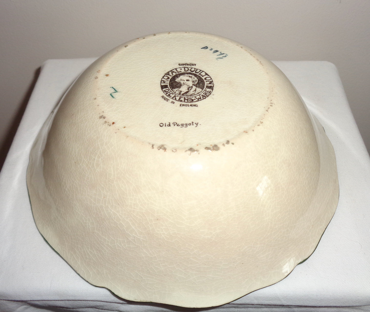 The base is marked with the special Dickens Ware stamp, the pattern number D2973, and the character name, Old Peggoty.