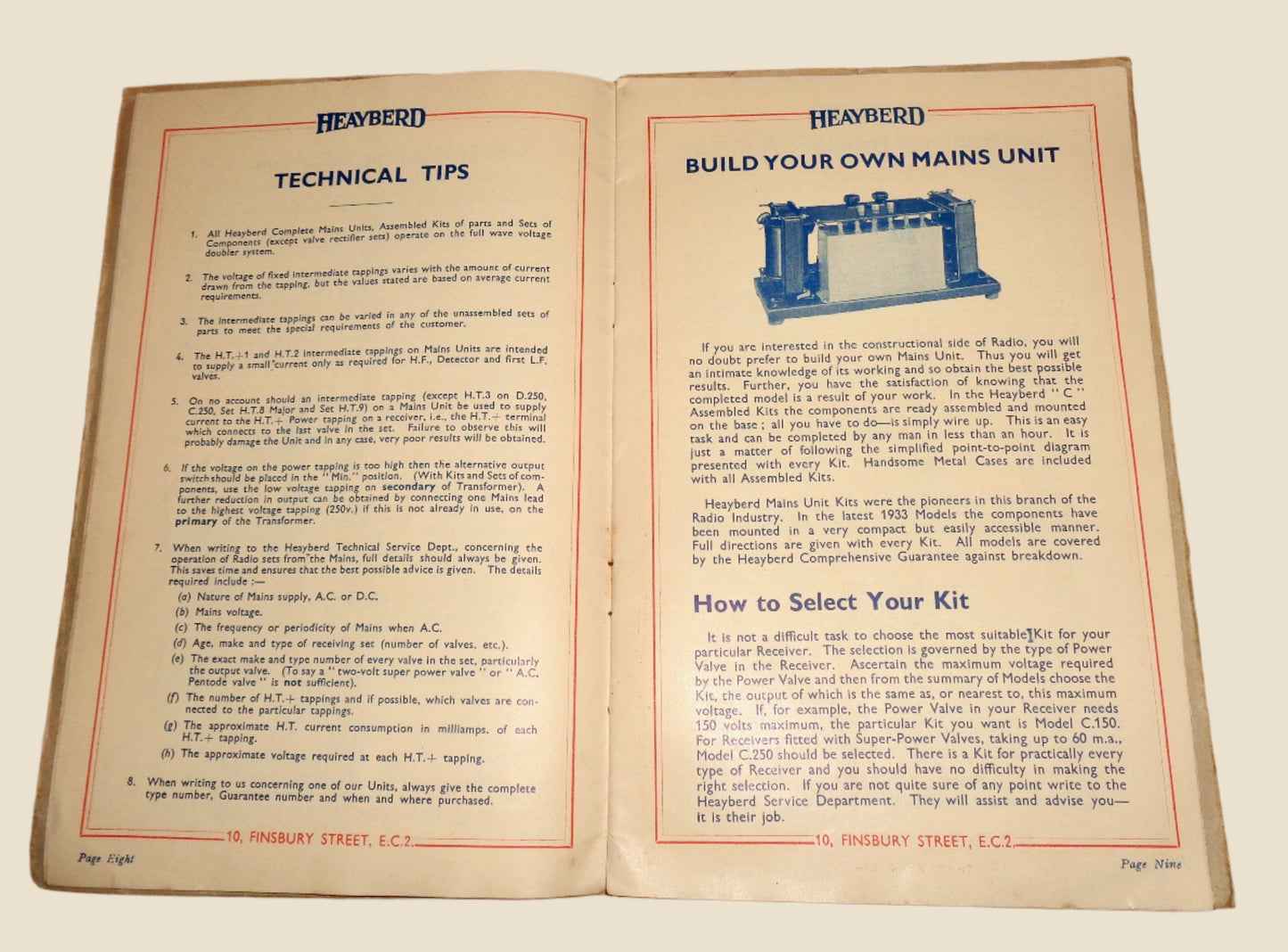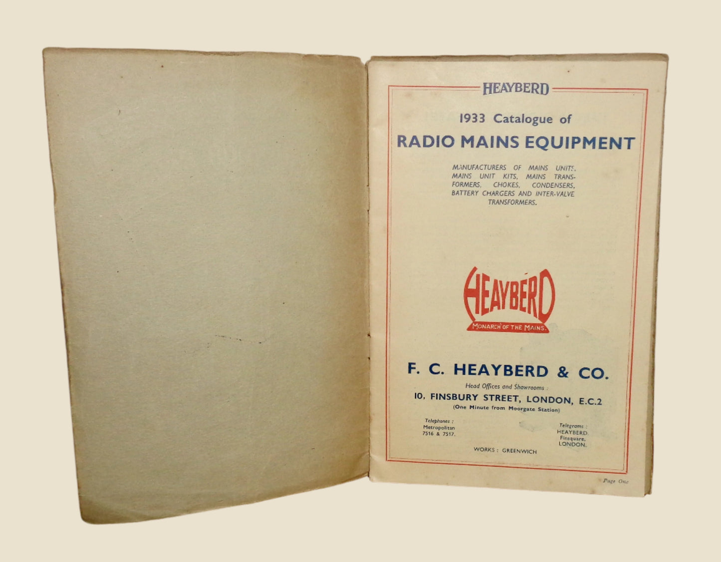This is an original 1933 Heayberd Radio Mains Equipment Catalogue.