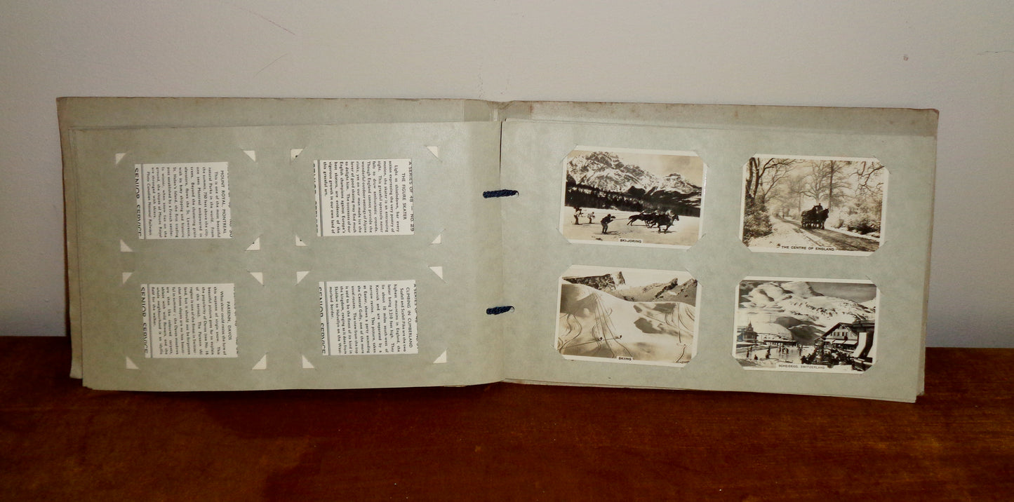 This is an original complete album comprising a series of 48 black and white snowy scenic photographs, all with useful descriptions on the rear. It was issued just before the outbreak of WW2.