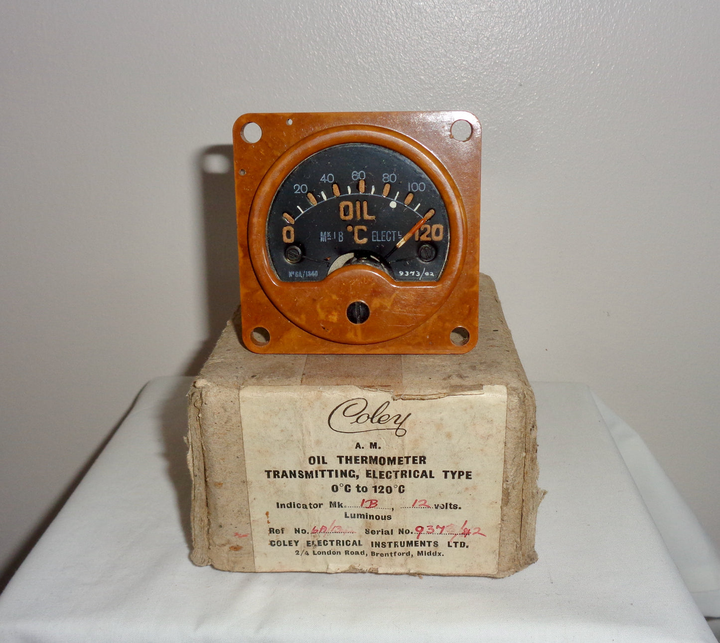 I love this 1940s Bakelite Air Ministry 6A/1340 RAF Aircraft Oil Thermometer 12 Volt Cockpit Gauge. Made in 1942 By "Coley Thermometers" for a WW2 Fighter such as the Spitfire or Hurricane.