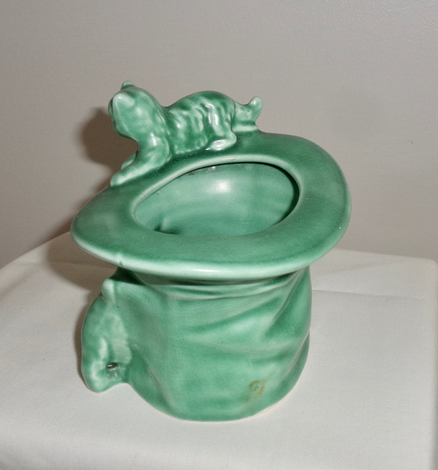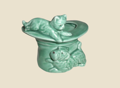 1940s SylvaC Green Model 1484 'Cat And Dog On Top Hat' Posy Vase