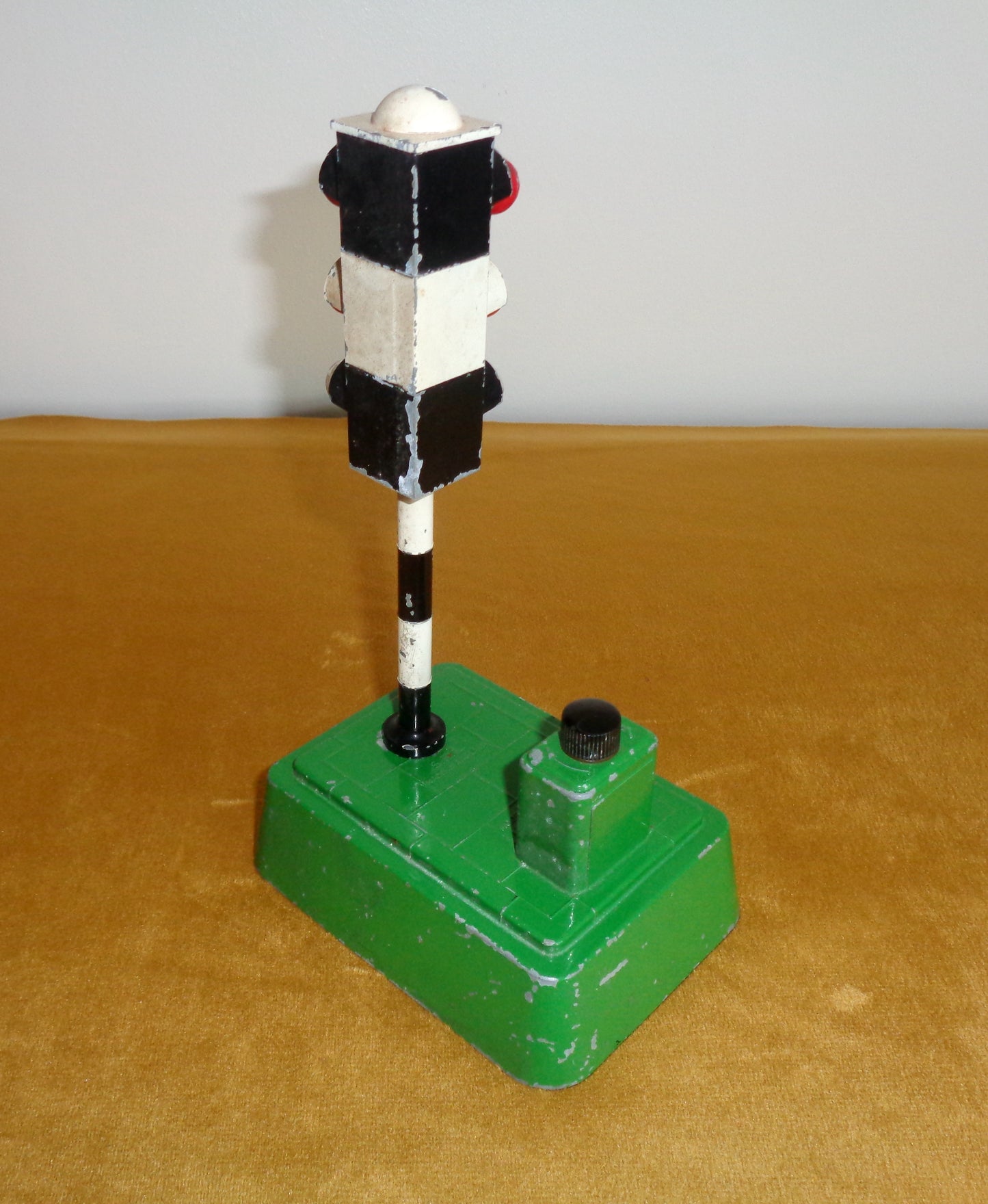 This is a quite rare 1950s British SEL Metal Battery Operated Traffic Light Toy Model 725.