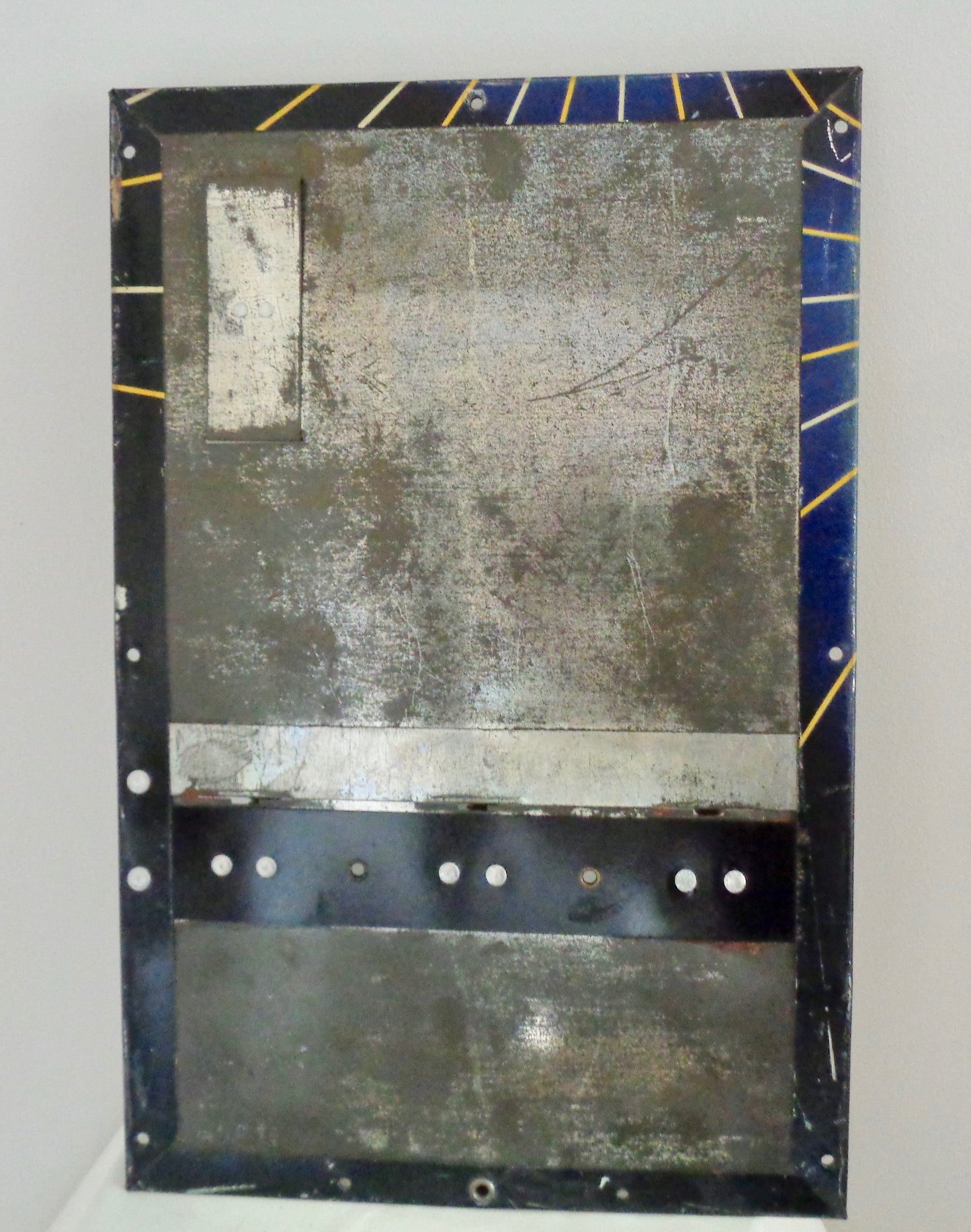 It is in fair used condition with some discolouration, paint loss, paint cracking, rust spots and scuffing commensurate with age and use as a shop counter display for batteries.