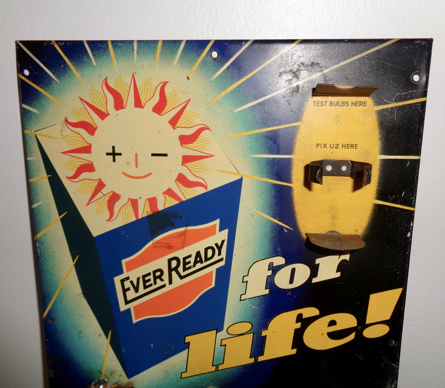 1950s Ever Ready Batteries For Longer Life Advertising Metal Lithographed Tin Sign