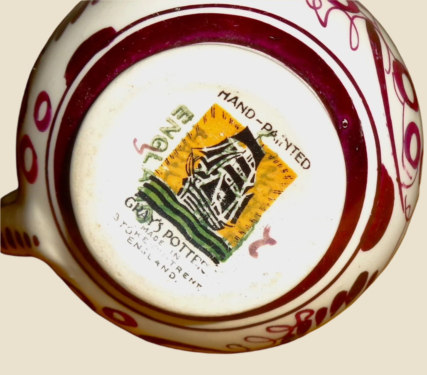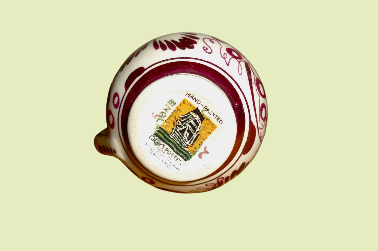This is an unusual, small, 1950s Grays Pottery Copper Lustre Milk Jug. Decorated by Gray’s Pottery, Stoke-on-Trent, Staffordshire, UK.