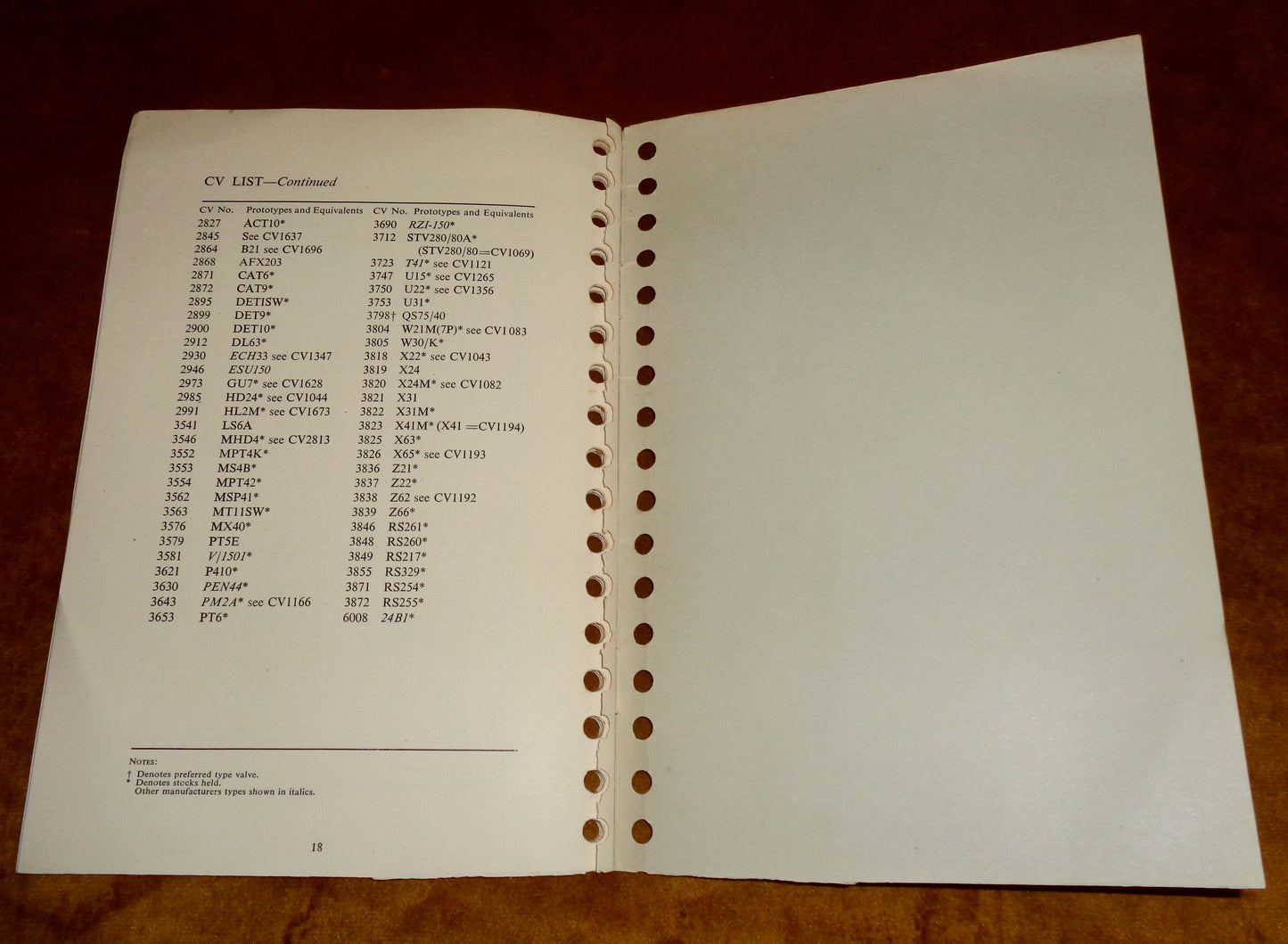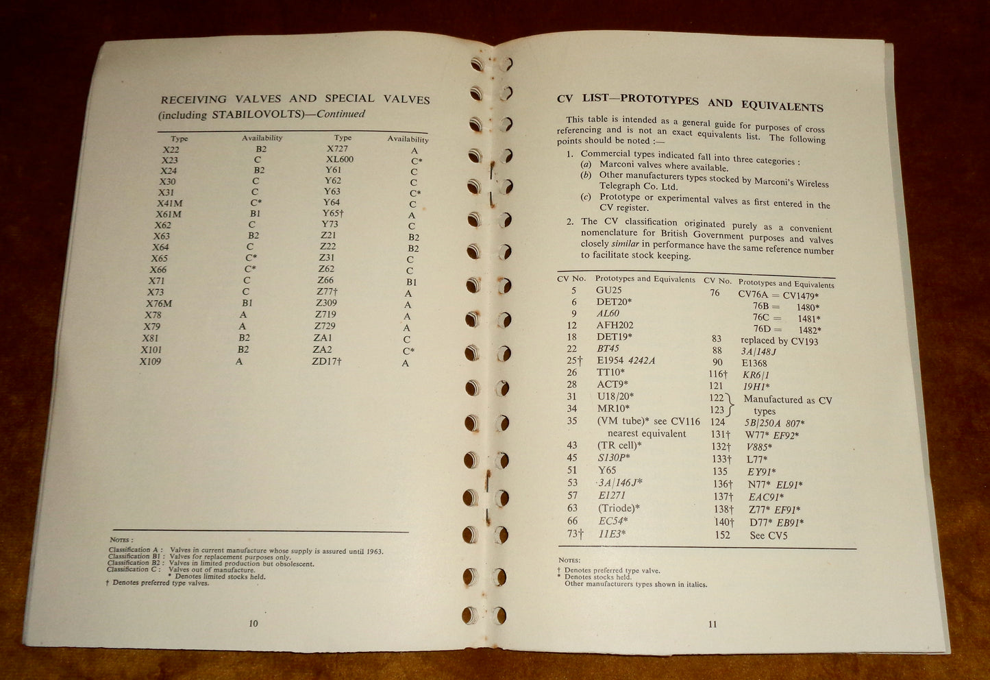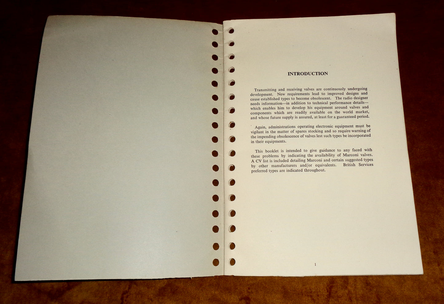 Originally owned by the Technical College, Brighton, it was provided by Marconi's Wireless Telegraph Co. Ltd to guide radio designers as to the availability of Marconi valves in 1954. A CV list was provided and other manufacturers' equivalents.