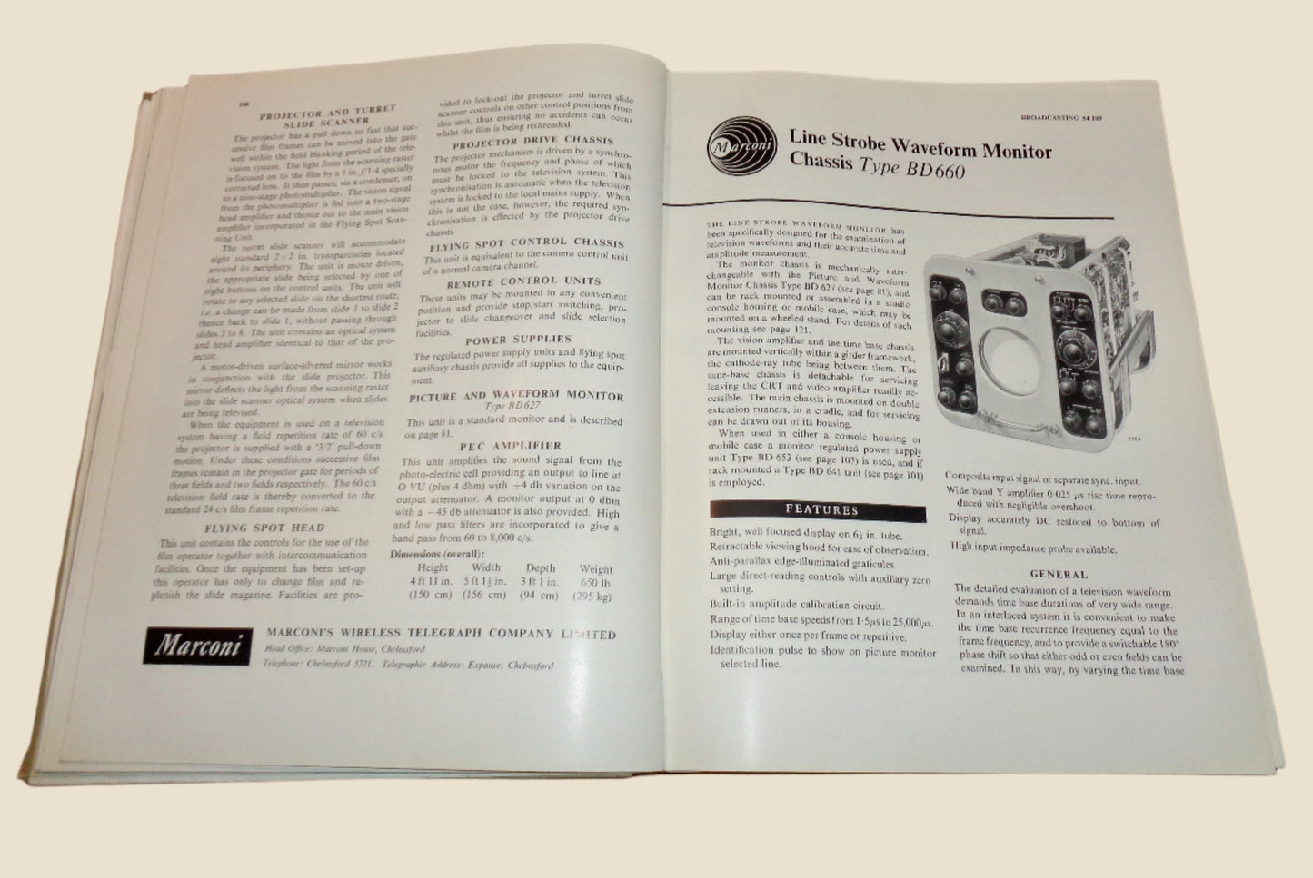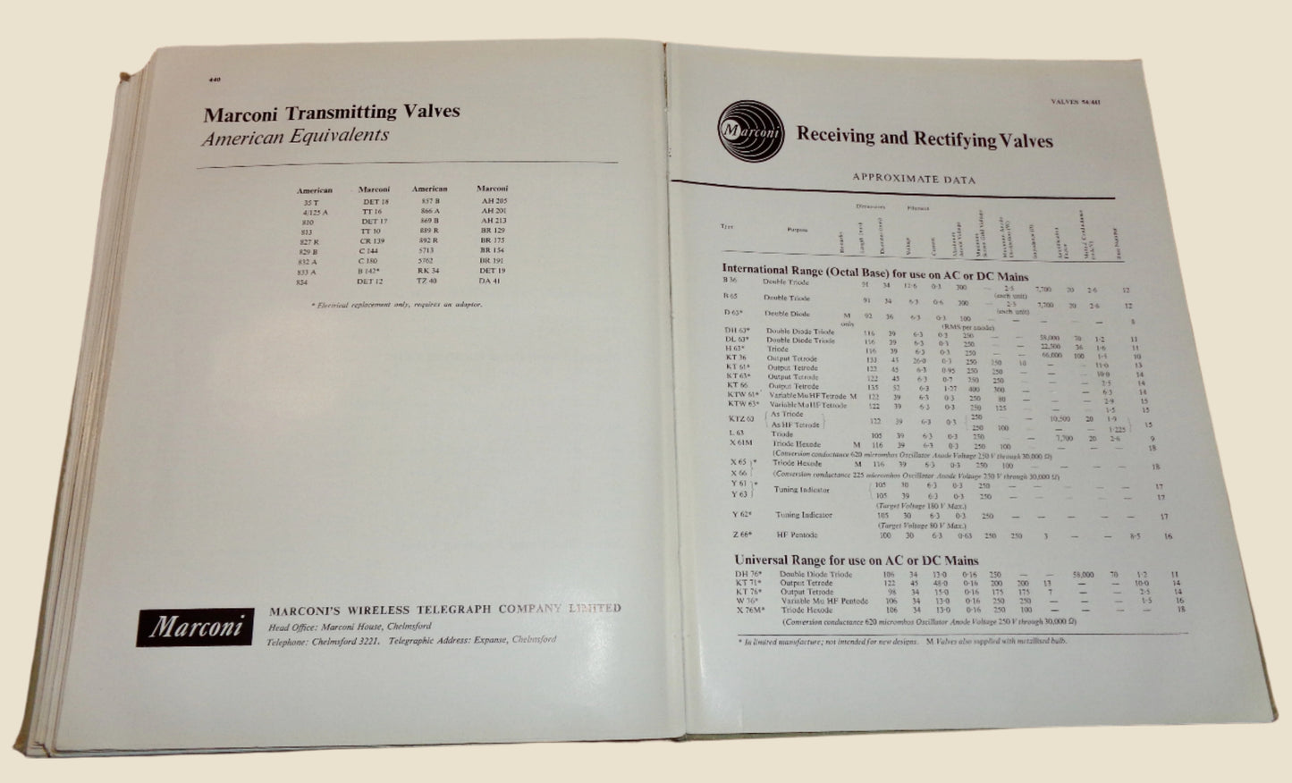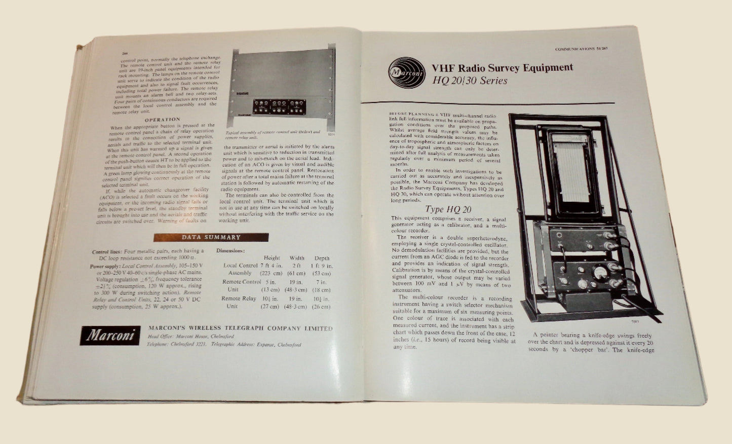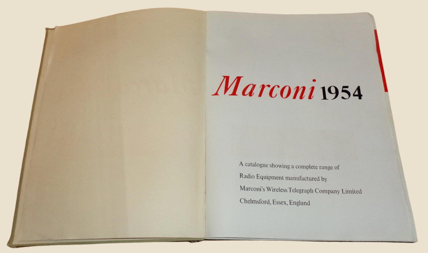 It was supplied by Marconi Wireless Telegraph Company Limited, Chemlsford, UK and provides details of all the radio equipment available from Marconi in 1954. From applications such as broadcasting / telephone / television/ aircraft / maritime / navigation / radar / radio transmitters/ receivers, the breadth of products available was extraordinary!
