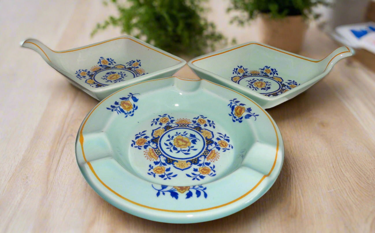 This a lovely set comprising a vintage 1960s Adams Ironstone Pottery Calyx Ware Shalimar Ashtray and Two Trinket Dishes.