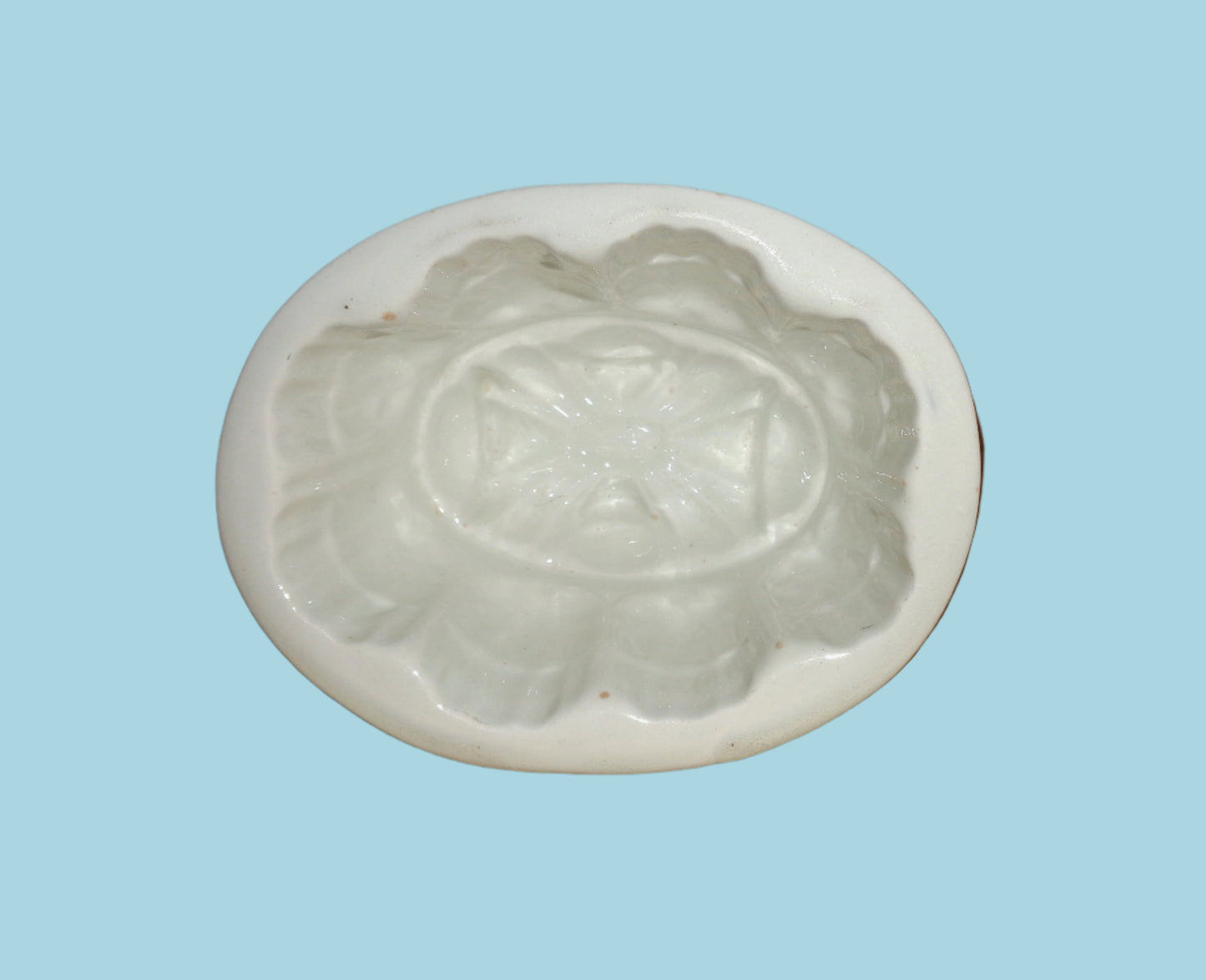 This is a wonderful Antique 1 Pint Ceramic Jelly / Aspic / Blancmange Mould with a Maltese cross style pattern at the bottom of the mould (top of the jelly).