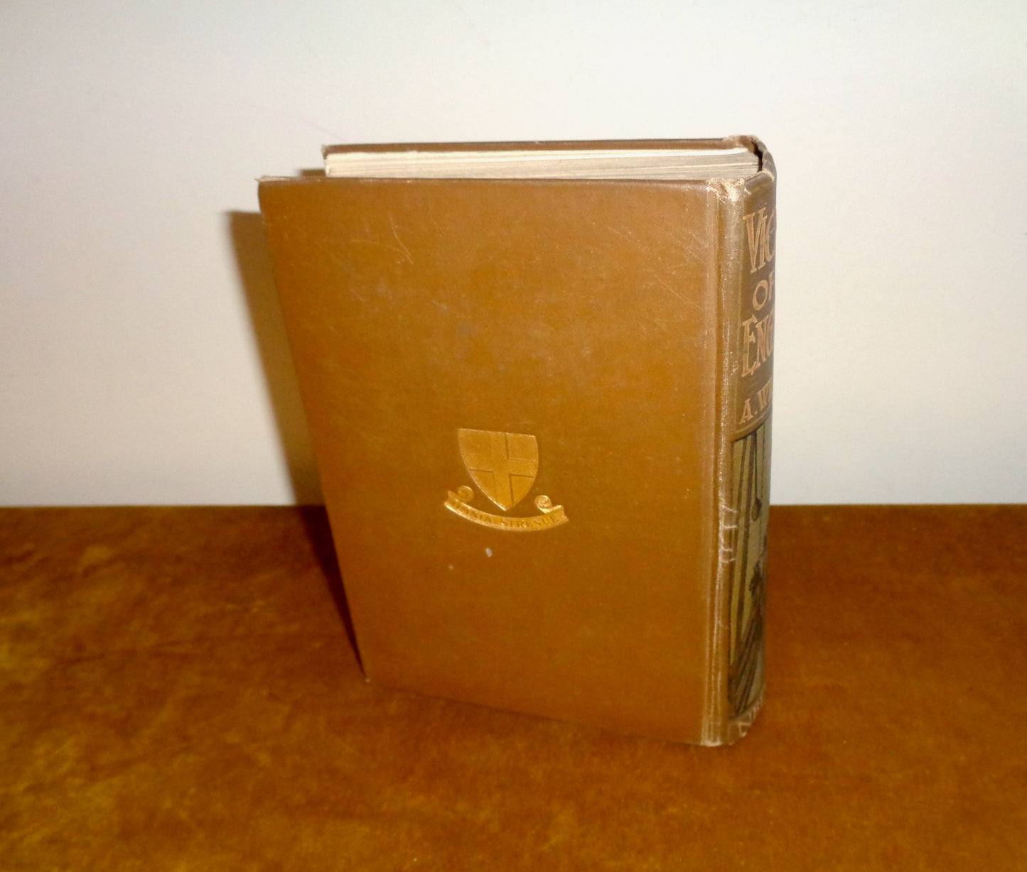 * Scuffed beige cloth hardcover with gold design and lettering.