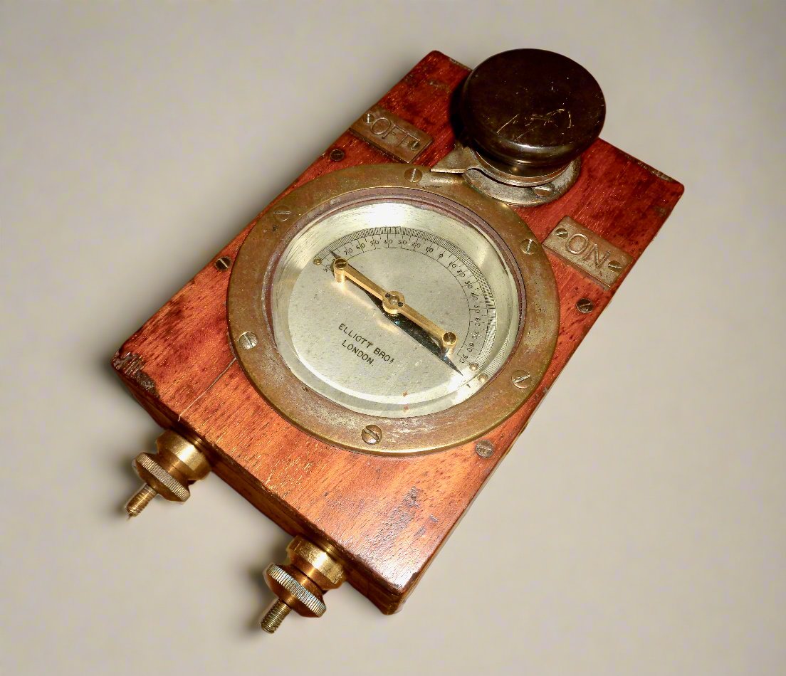 Antique Elliott Brothers Galvanometer Telegraph Lineman's Detector In Wood & Brass