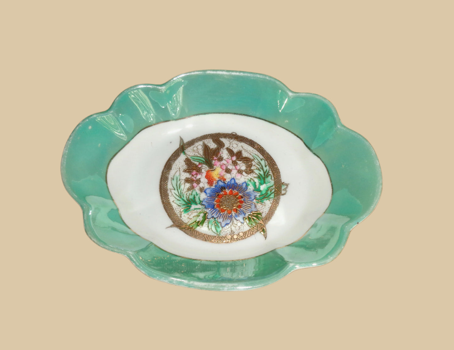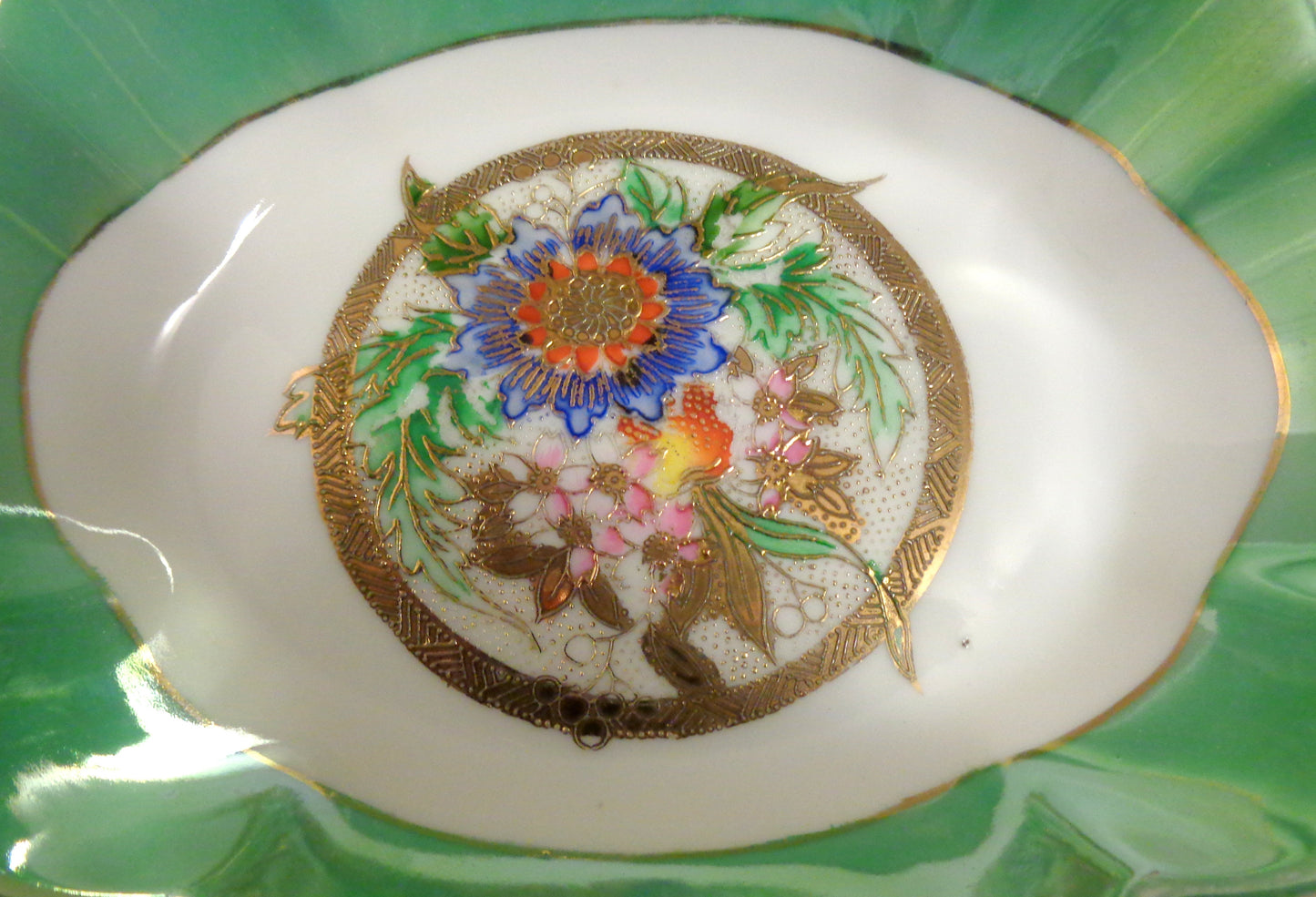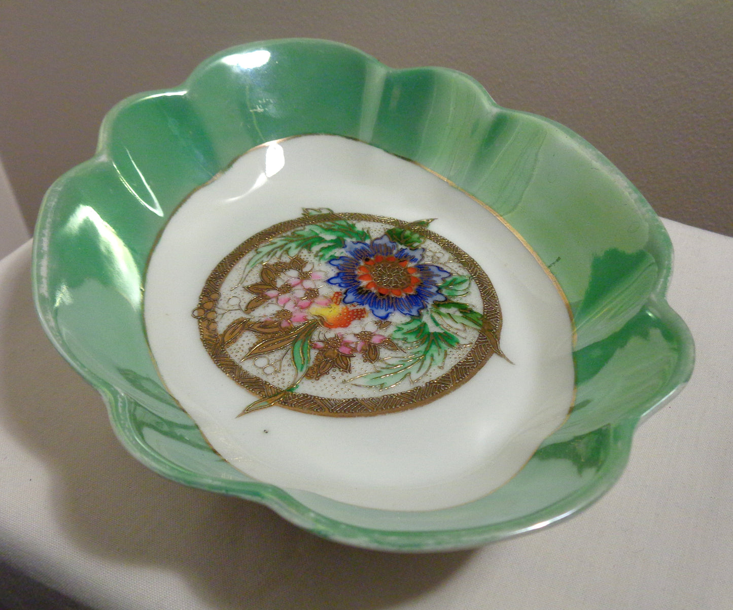 This Green Fluted Antique Noritake China Bonbon Dish 44048 was made in Japan after 1911. I don’t know the name of the pattern 44048, and neither have I been unable to track it down on China Replacements websites.
