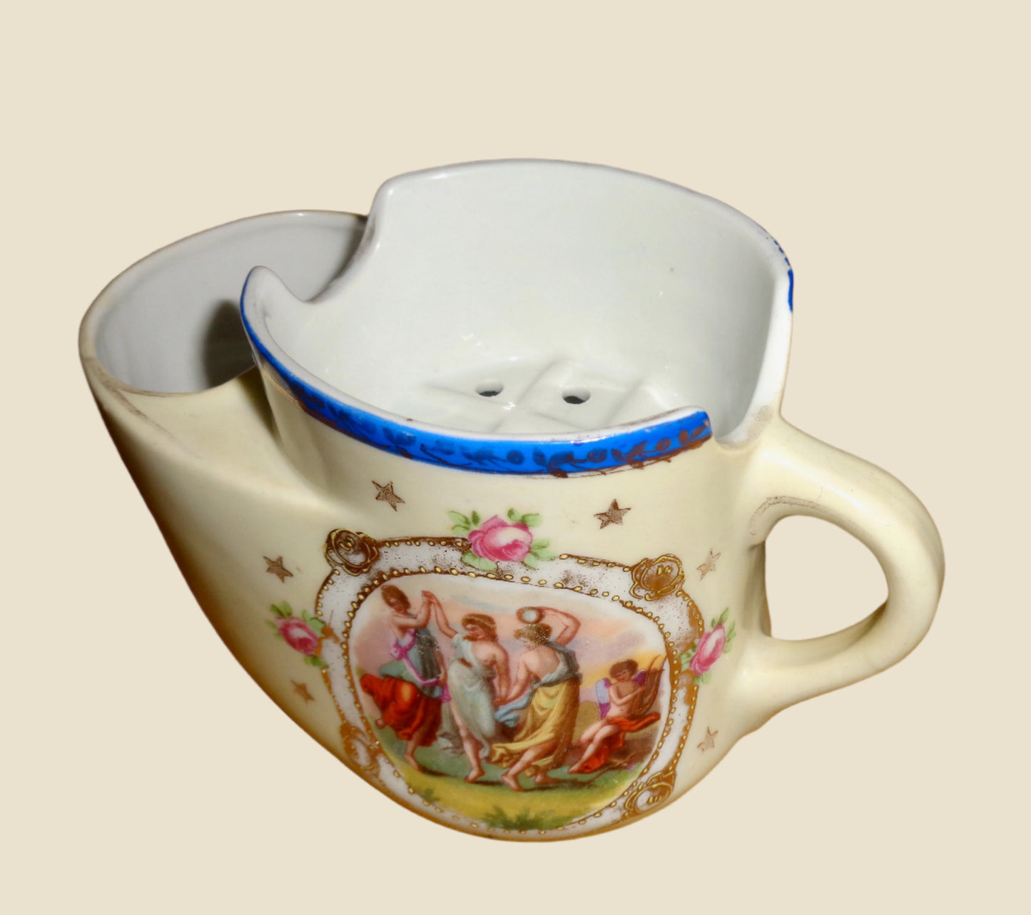This Antique Victoria Austria China Shaving Mug / Scuttle / Cup is in very good condition, with no chips, cracks or restoration. Perfect for display or use in your Barbers shop or bathroom!