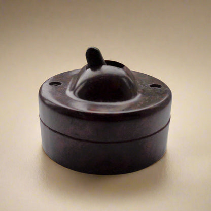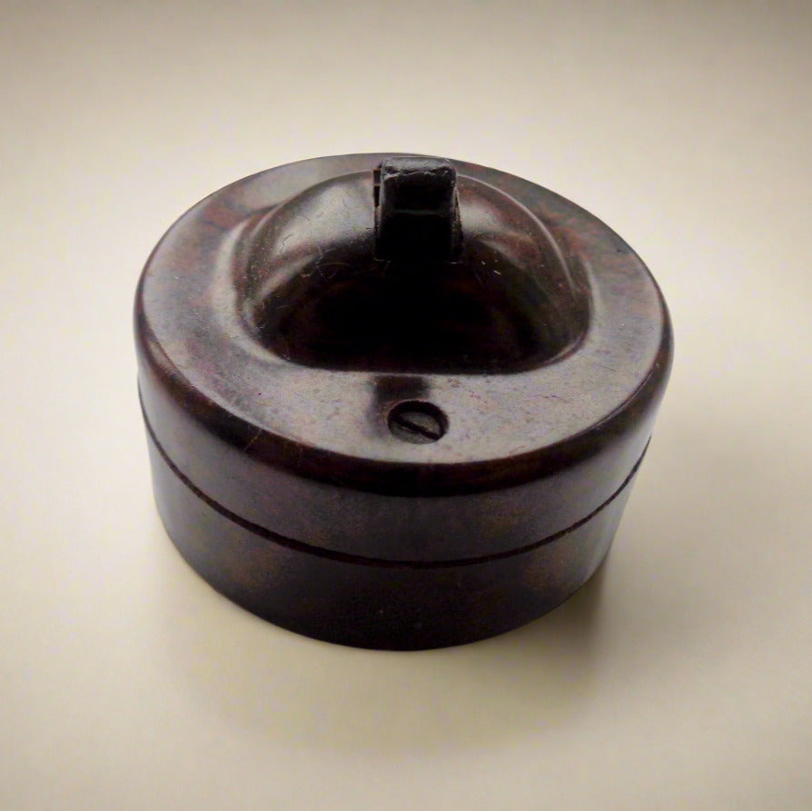 For all collectors of Art Deco period homewares or Architectural salvage, we have a 1930s Art Deco Brown Bakelite Goltone British Toggle Light Switch.