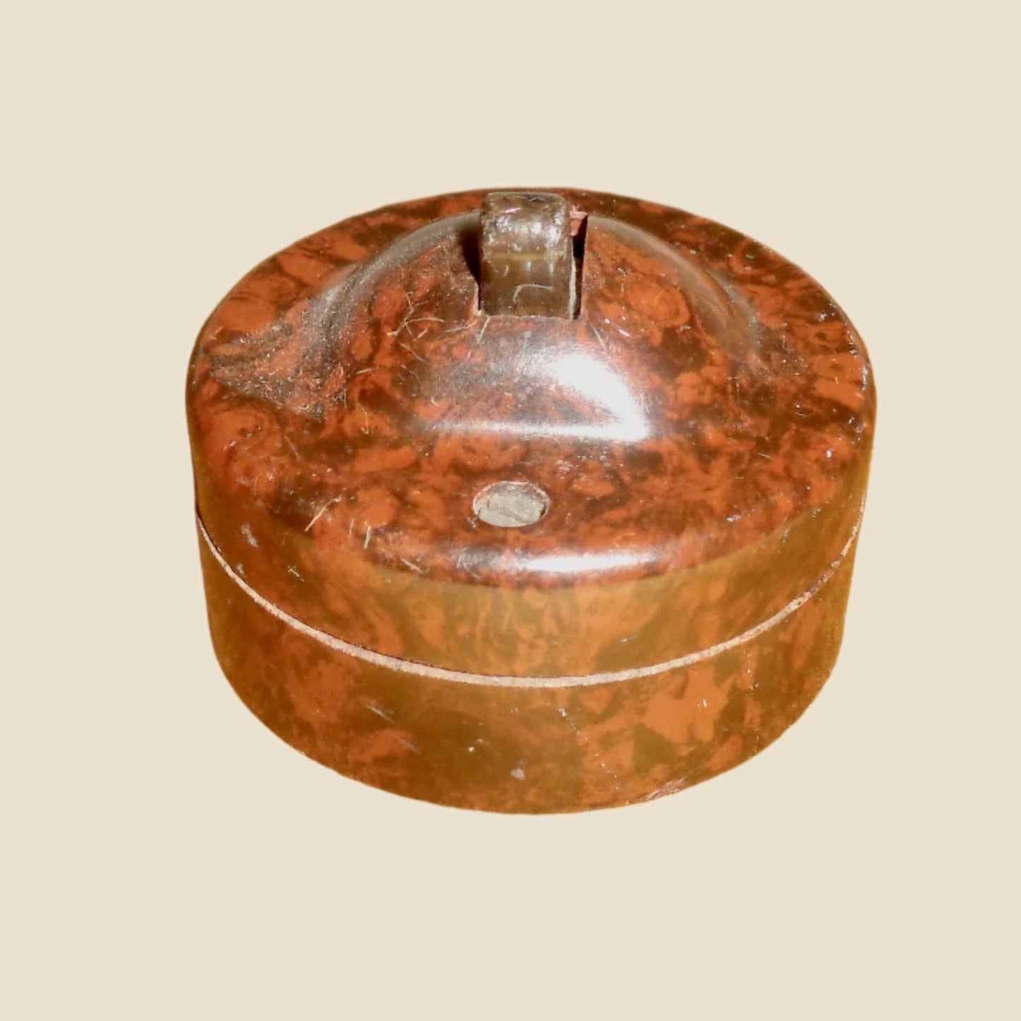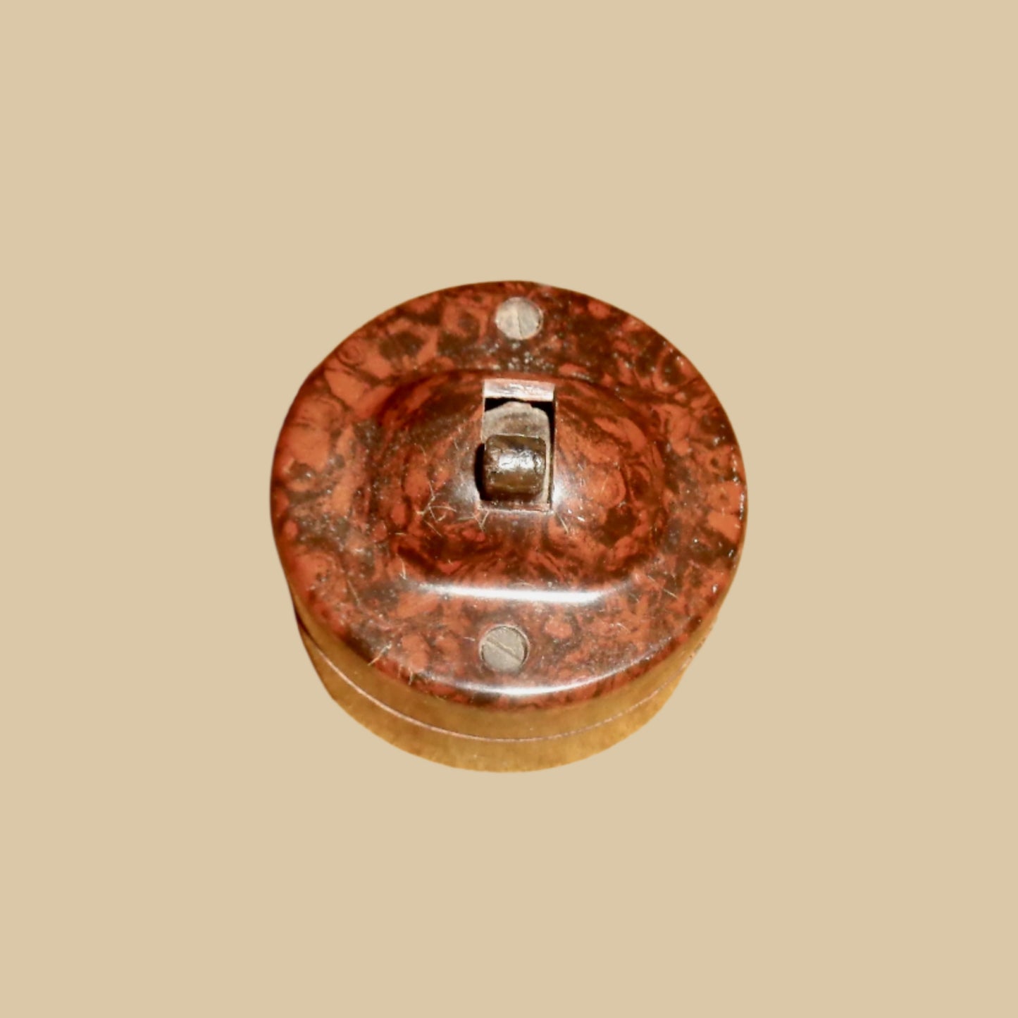 The face and base are made from speckled brown bakelite. It is in reasonable vintage condition. There are a few surface scuffs and scratches.