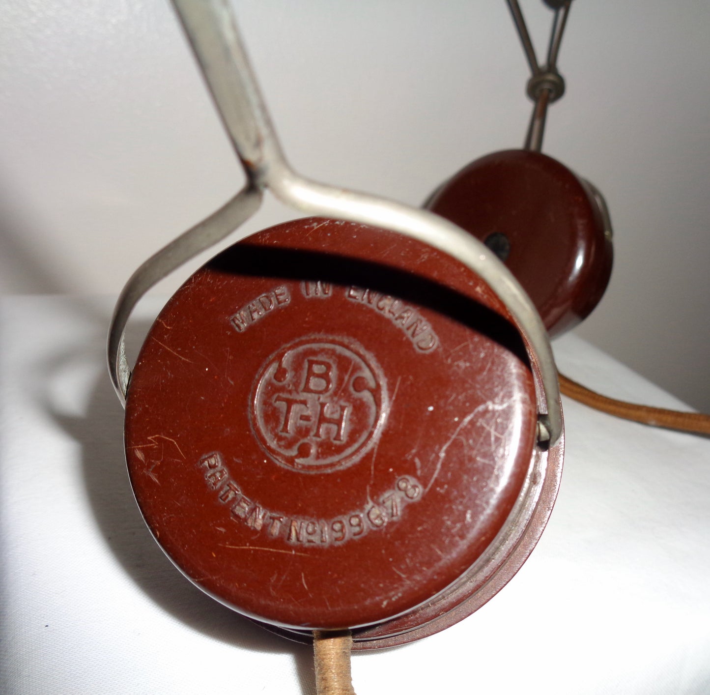 British Thomson Houston BTH Bakelite Leather Headphones 2000 Ohms
