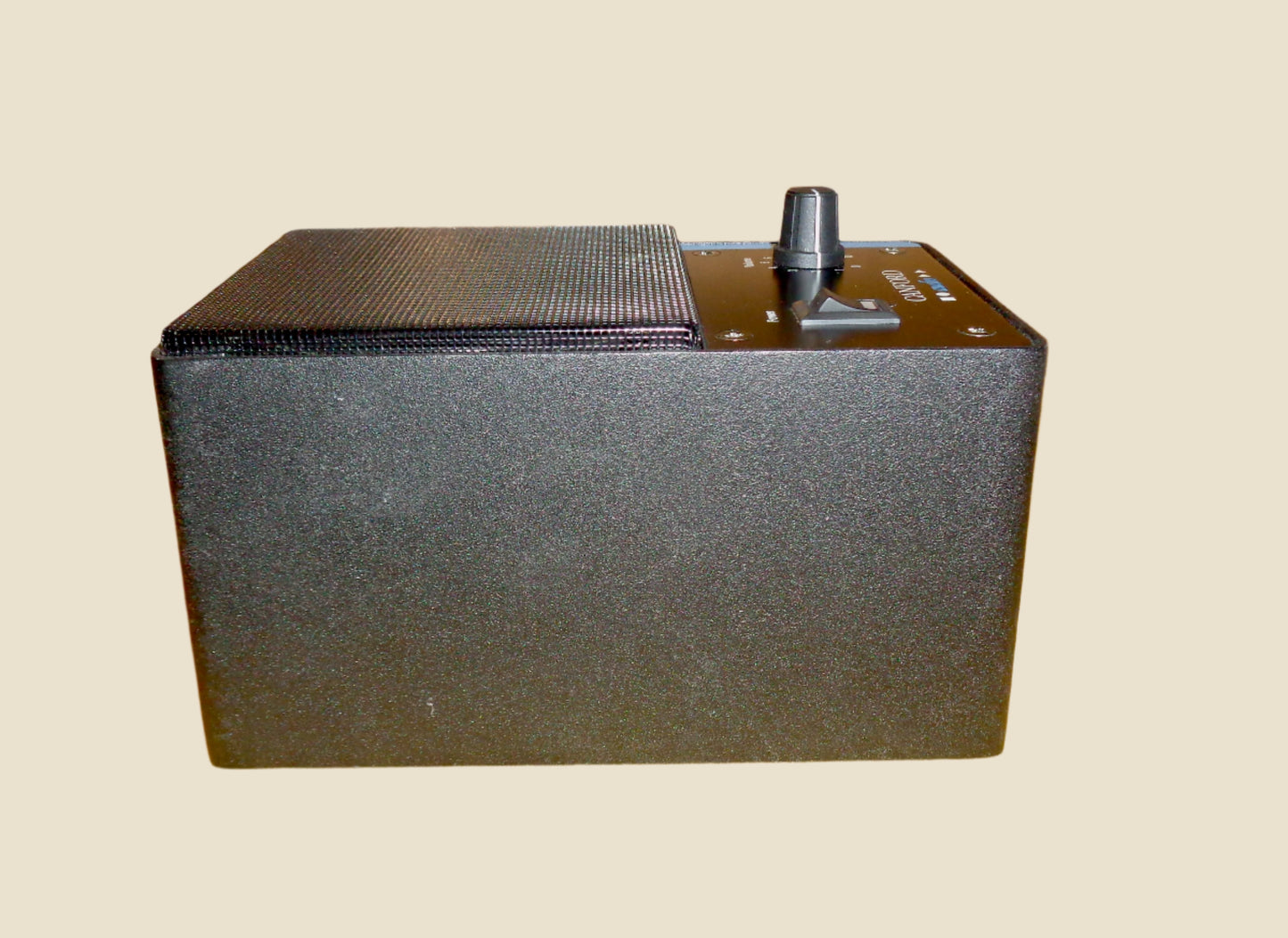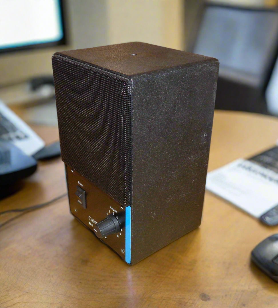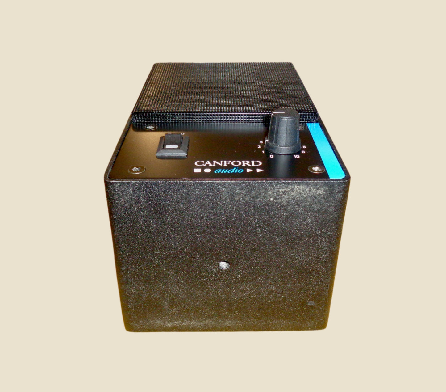 This preowned, small, Canford Audio 76-361 Powered Diecast Freestanding Portable Loudspeaker is in pretty good cosmetic condition with some surface scratches and blemishes.