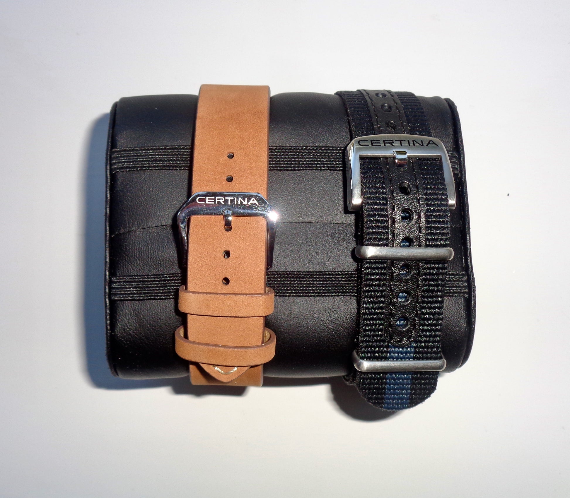 - Certina brown leather strap with quick release spring bars and stainless steel buckle