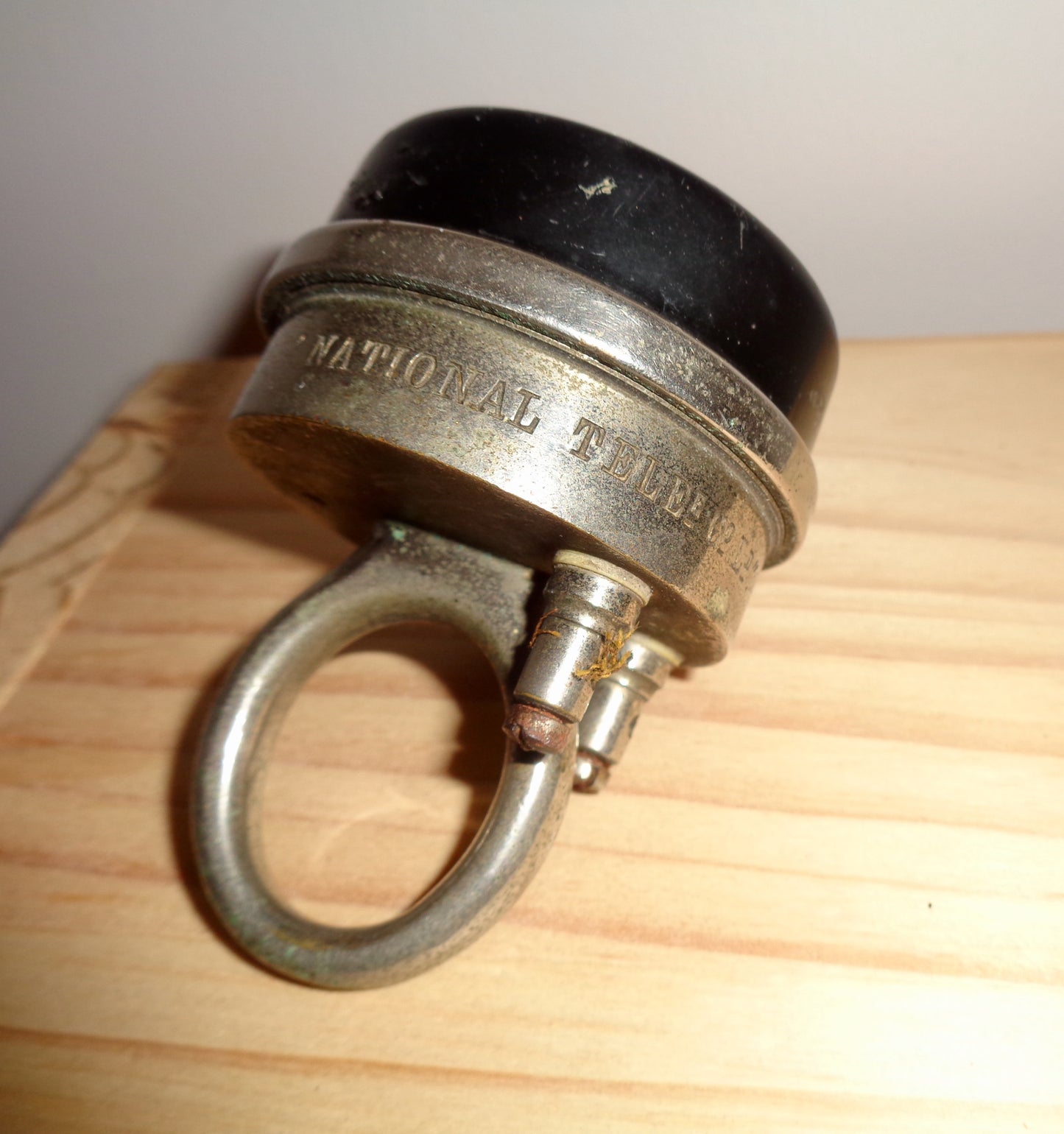 This lovely little item is an Antique French Made Pocket Telephone Receiver For The National Tele Co. Made from bakelite and chromed brass. Designed to be small enough to fit into a large pocket and be flame proof.