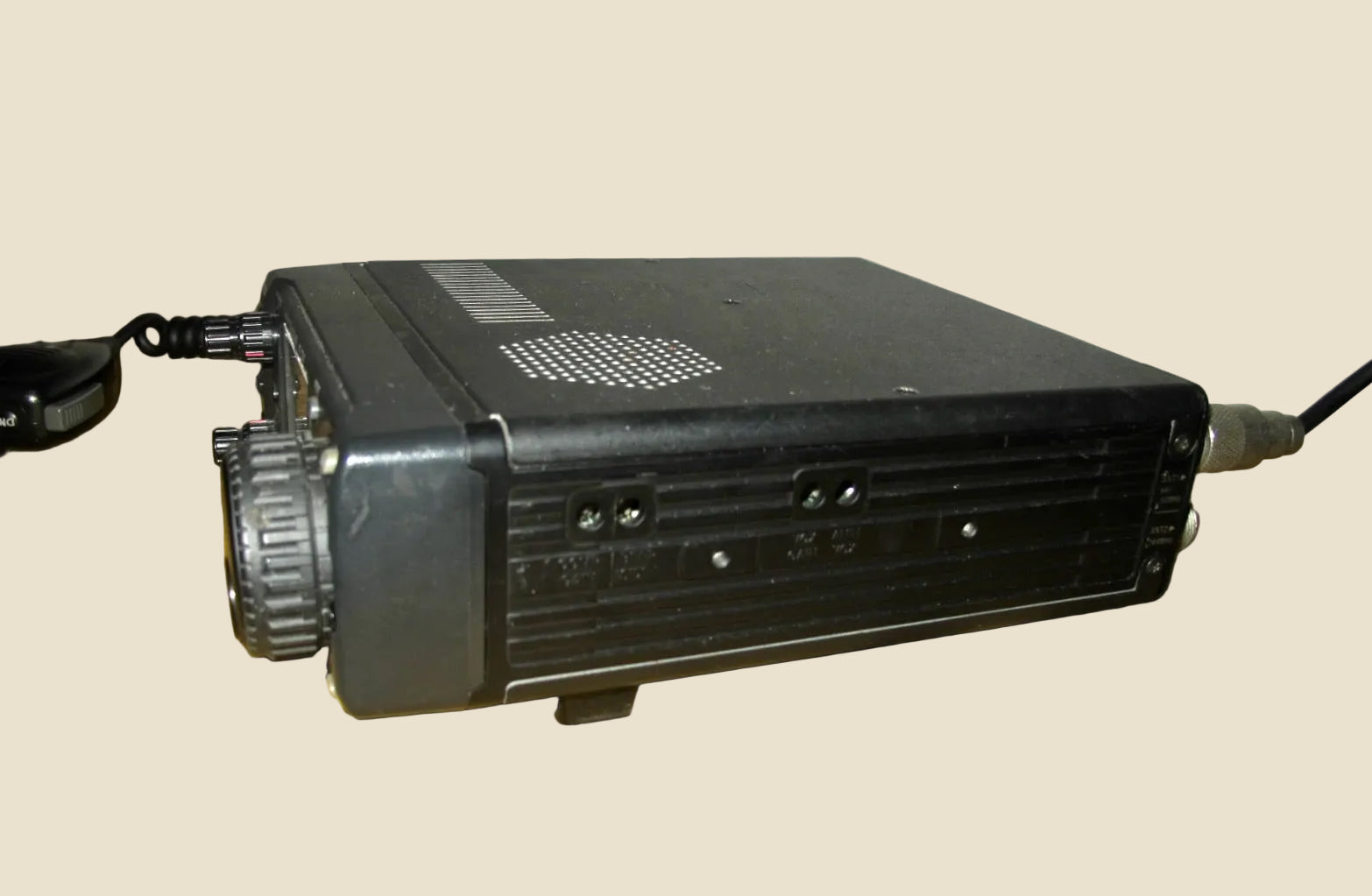 A preowned, 1990s, Icom IC-706 HF Mobile Transceiver With HM103 Microphone.
