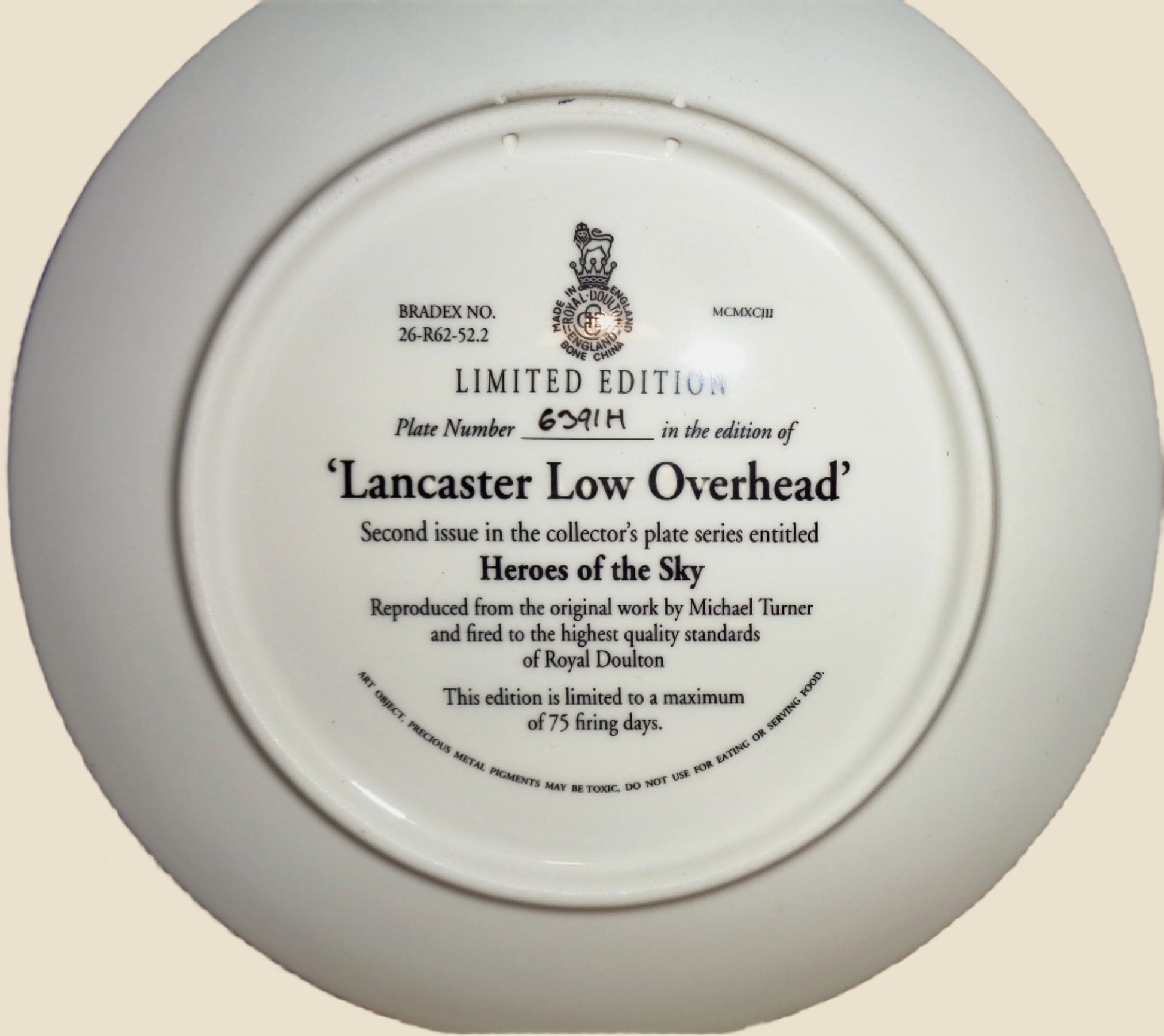 Lancaster Low Overhead Royal Doulton Commemorative Aircraft Collector's Plate Number 6391H