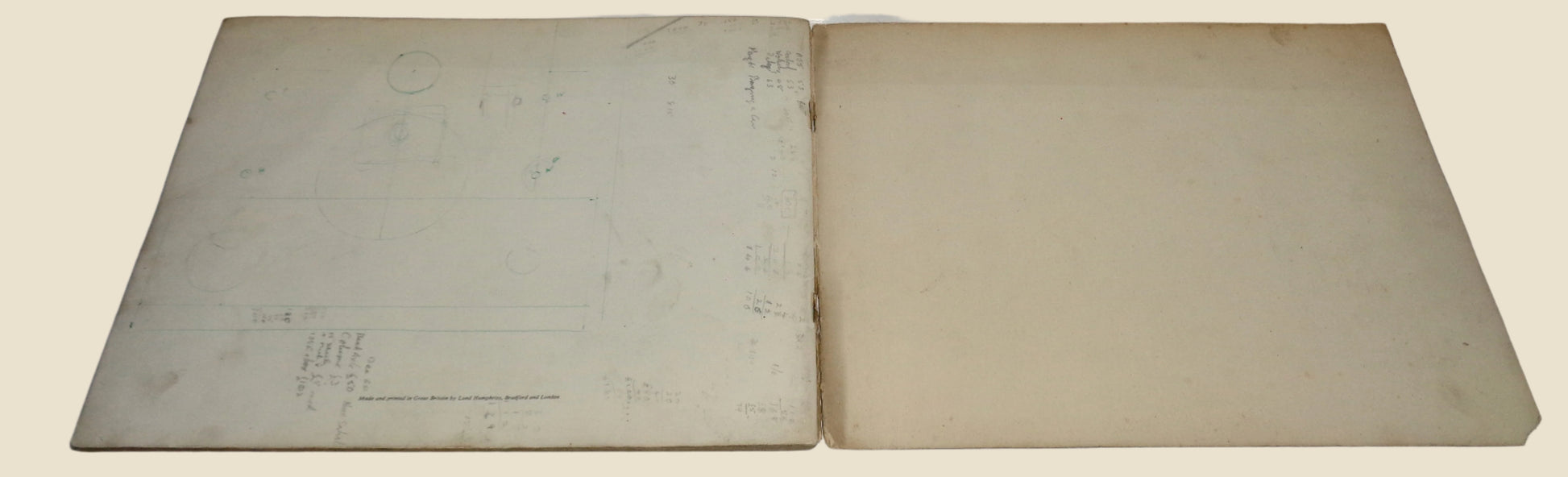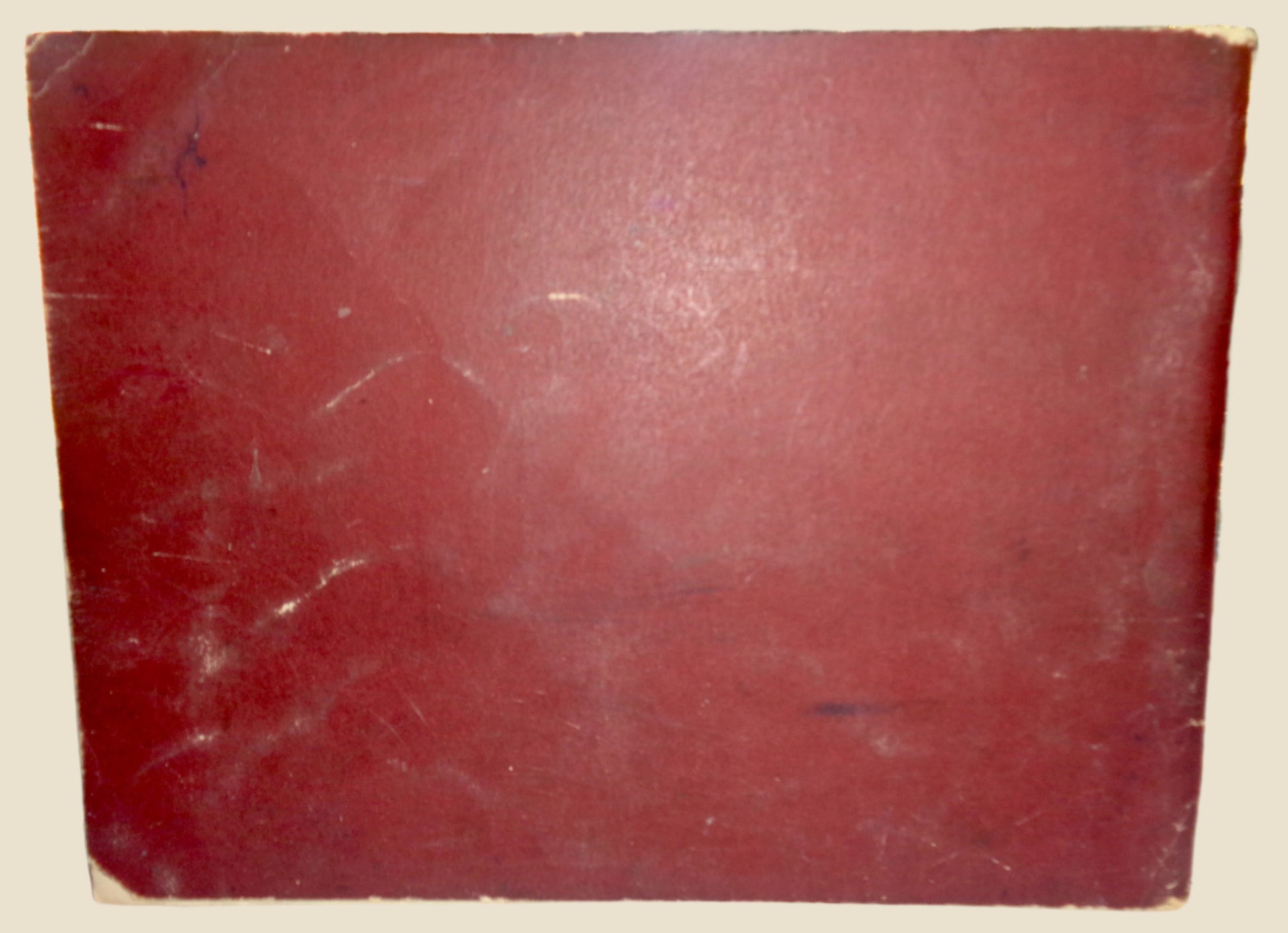 In fair condition with discolouration, blemishes, slight tears and grubby marks on the paper back cover. The pages have yellowed but are intact. The outer soft cover is only held on by one staple, is annotated in places, and has red ink splodges.