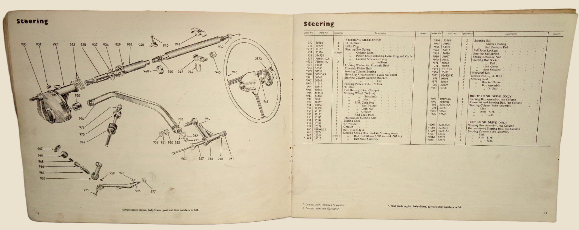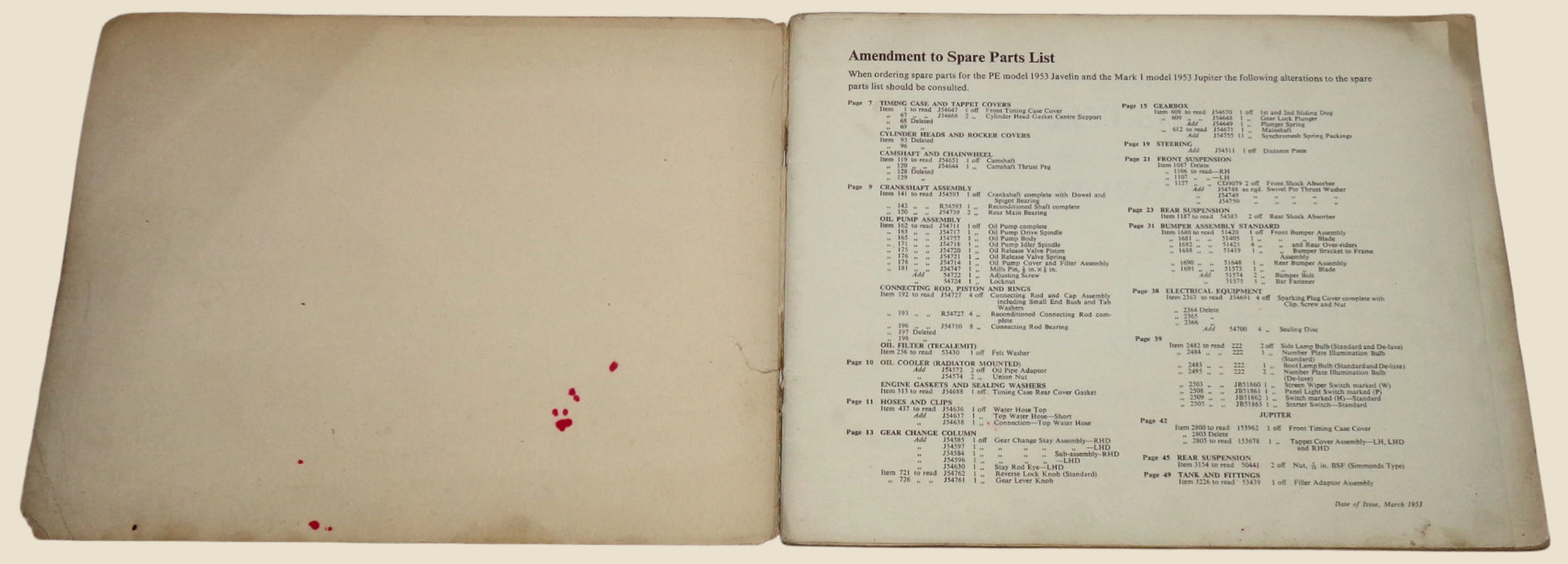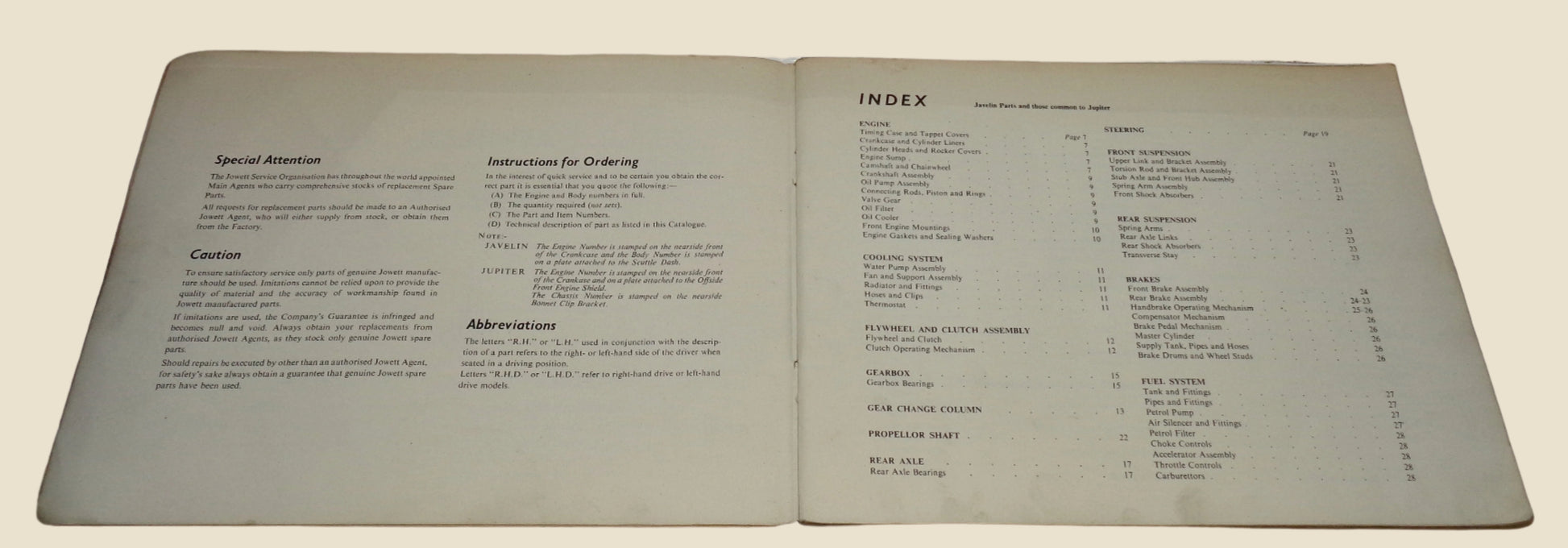 An Original 1952 Jowett Javelin & Jupiter List Of Spare Parts / Catalogue for these iconic British classic cars.