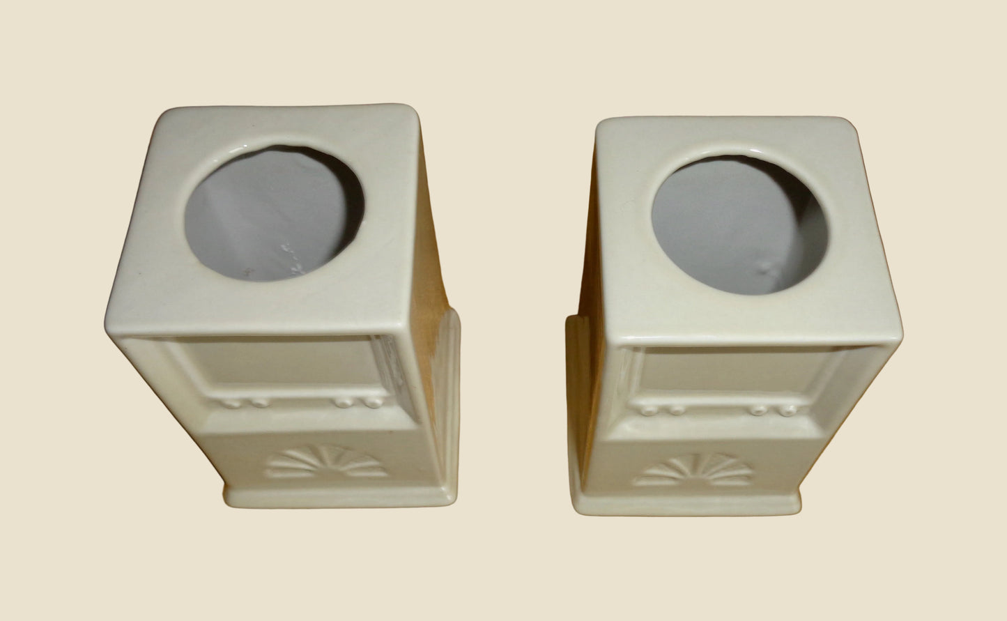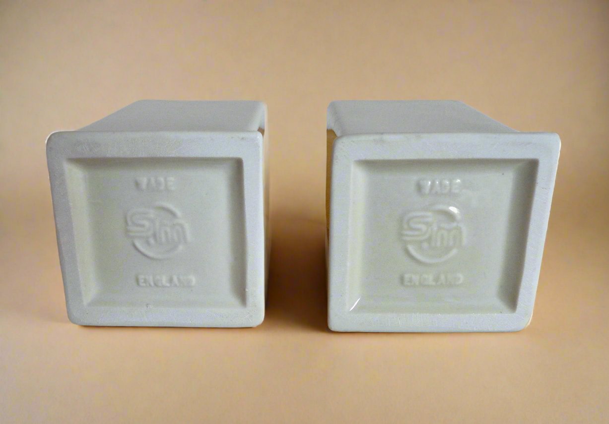 Pair of Cream Wade Pottery Desk Pen Pots With Vintage Television Embossing