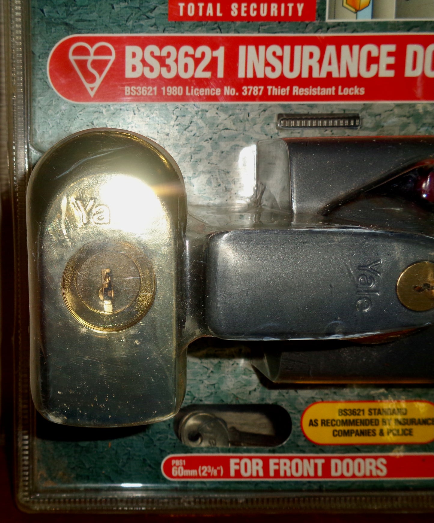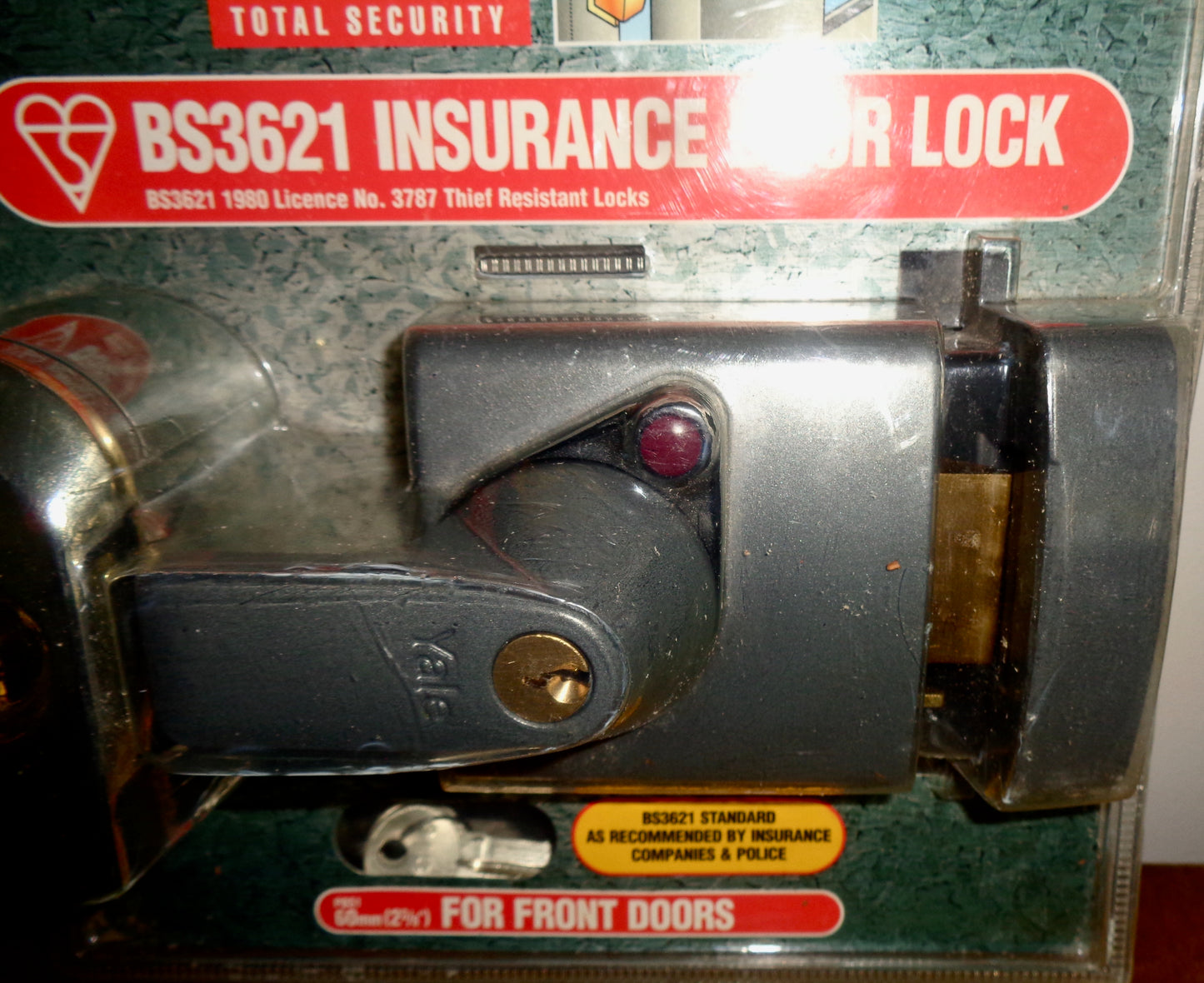 A PBS1 Yale BS3621 Insurance 60mm Door Lock. Brand New Old Stock in its original packaging with keys. The packaging is slightly scruffy but the lock inside is unused.