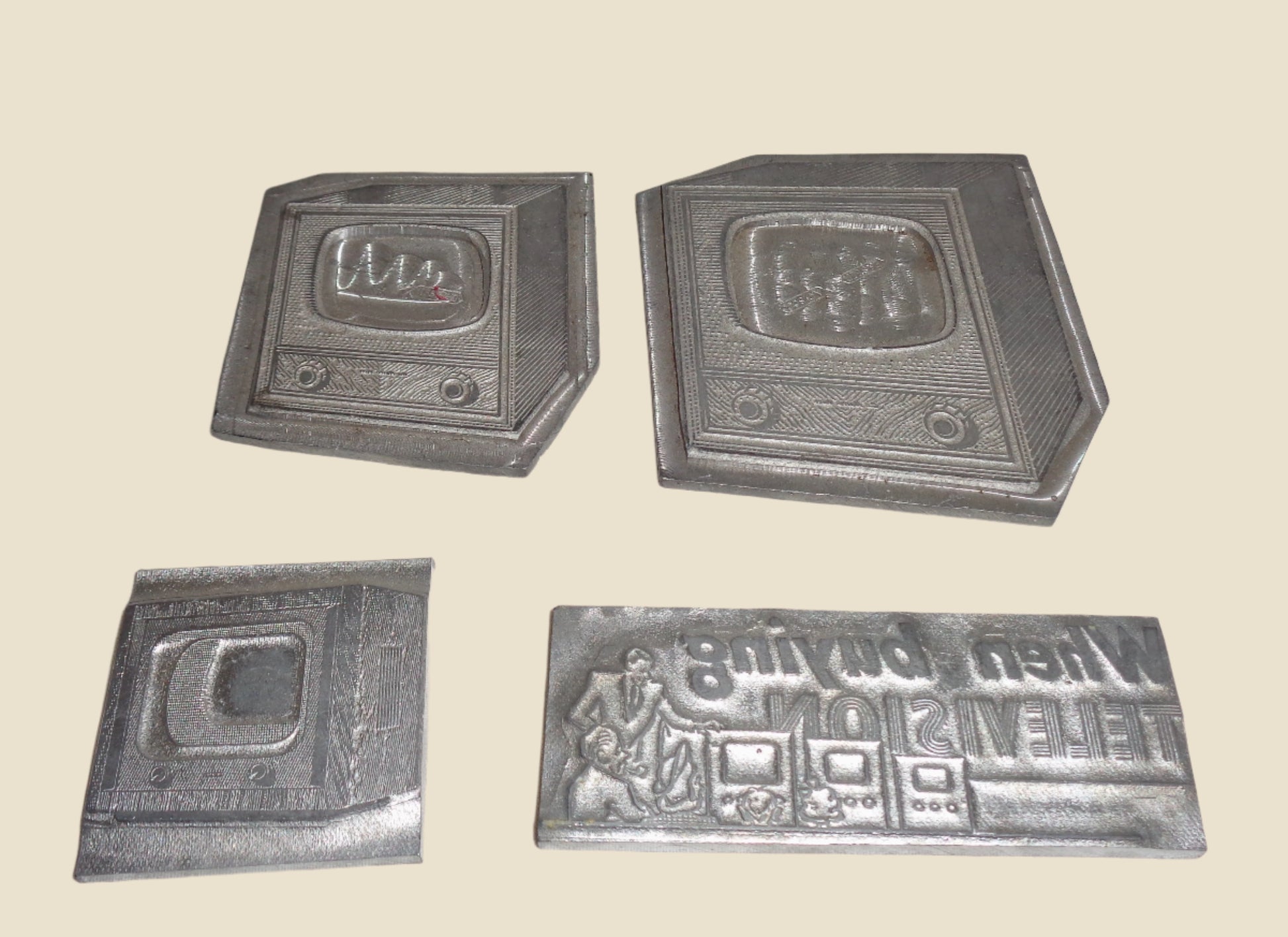A little slice of history, dating to April 1950, these letterpress printing plates were sent to retailers and dealers by Murphy Radio to create their own marketing material. They refer to them as 'Illustration blocks' and were produced for different layouts on Foolscap/A4 paper. This particular set was produced for Murphy branded Televisions.