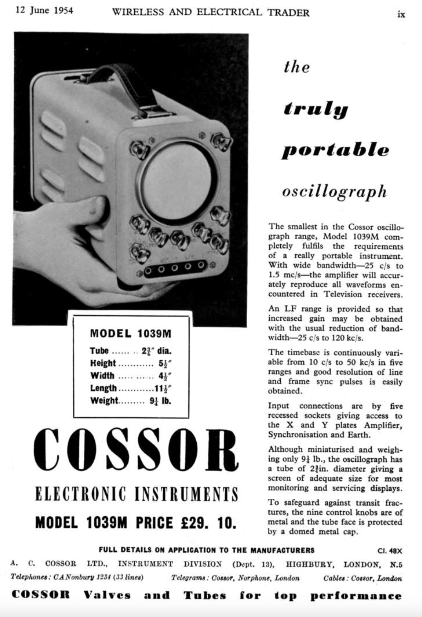 - Manufacturer: Cossor Electronic Instruments, AC Cossor Ltd, London UK