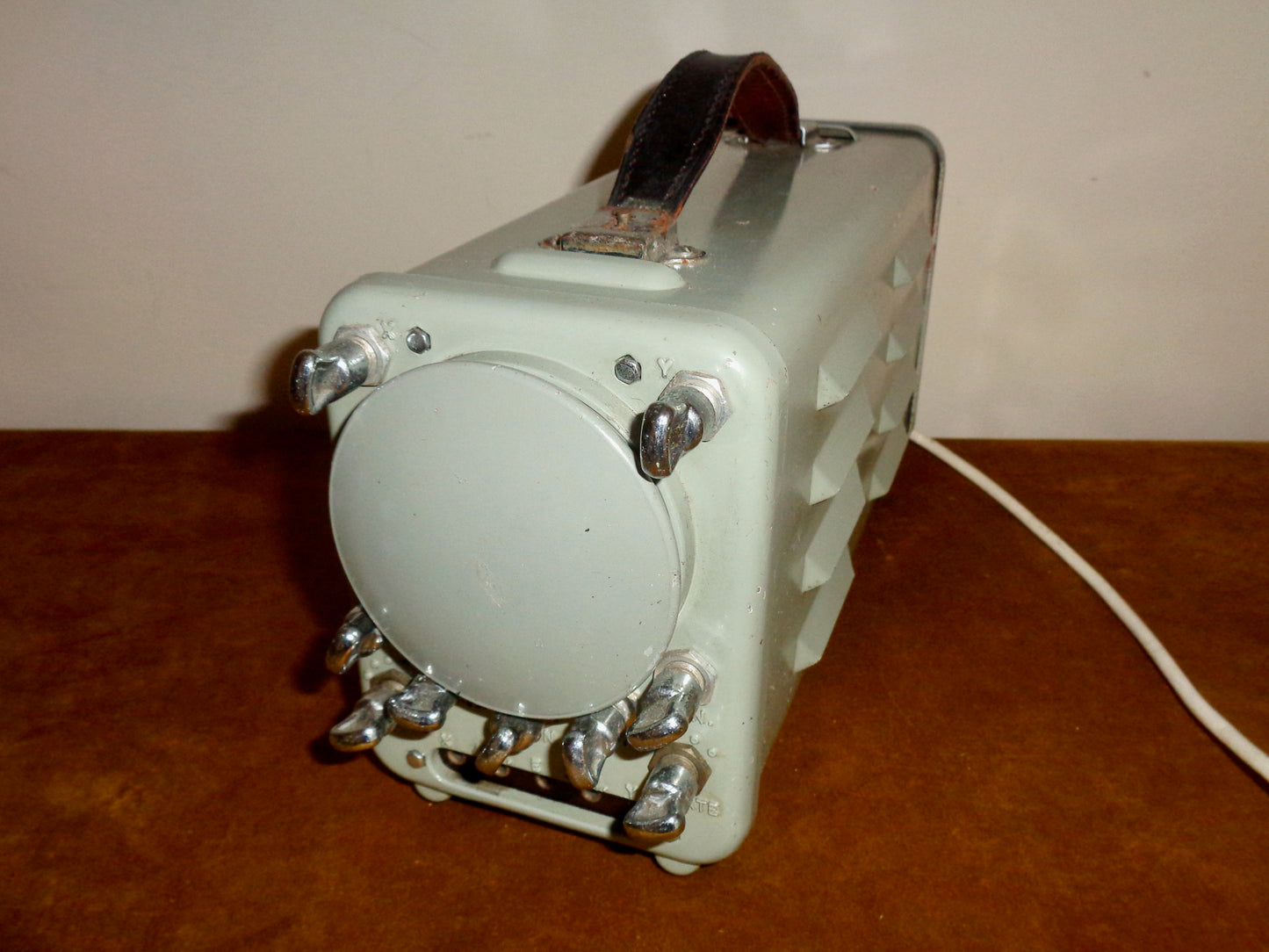 A nice and robust, portable, Vintage 1950s AC Cossor Oscilloscope / Oscillograph Model 1039M. In very good cosmetic and working condition, this scope uses valves and rectifiers in the circuit. It was popular with television service engineers as it covered the waveforms of most 1950s TV receivers.