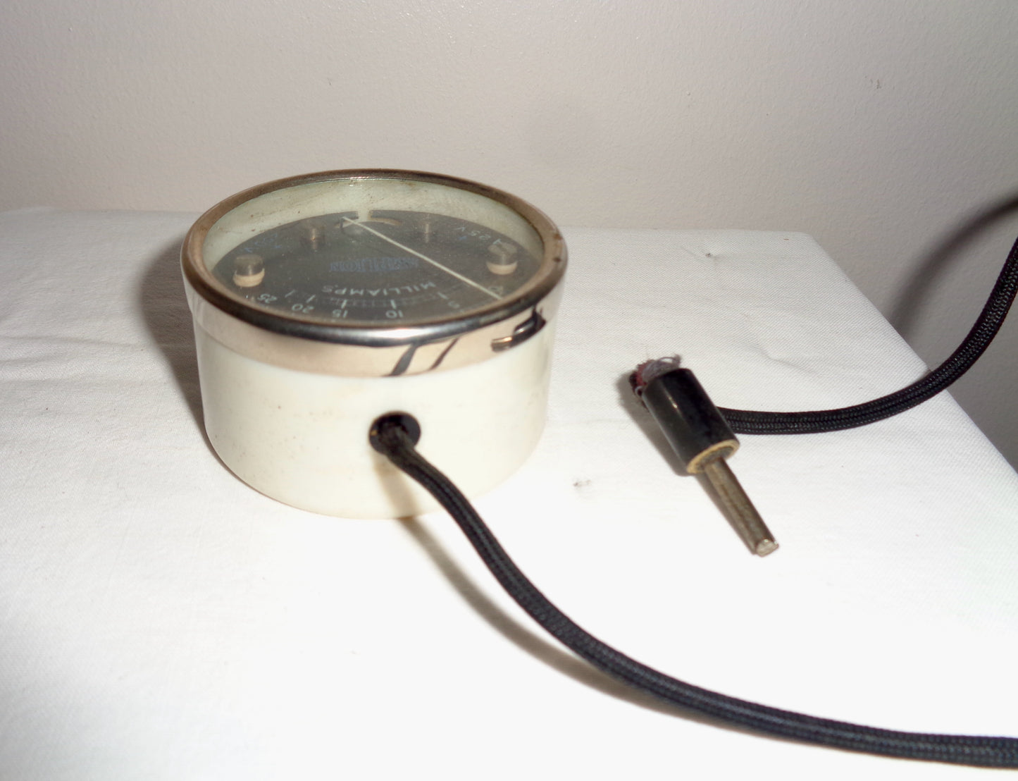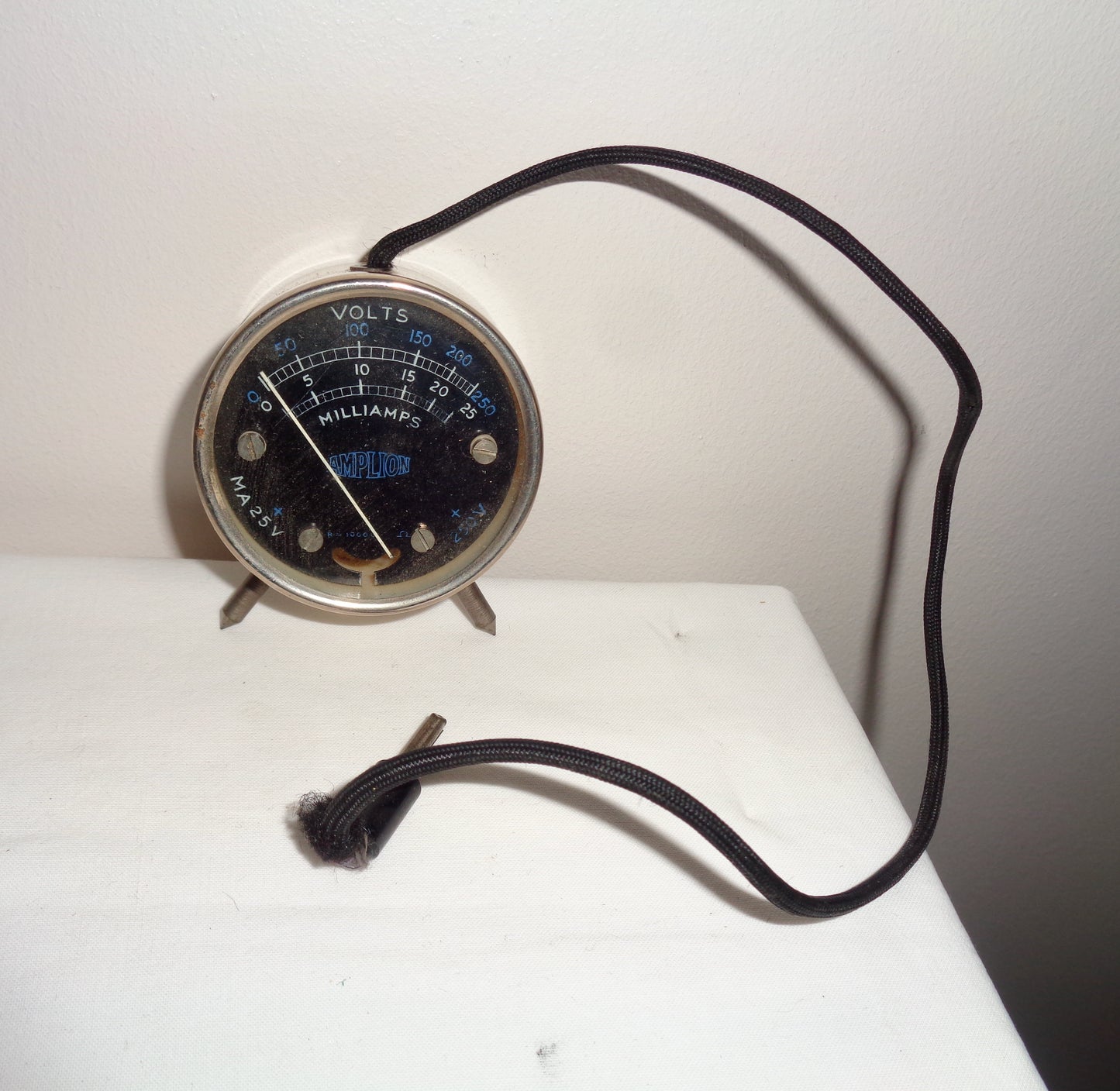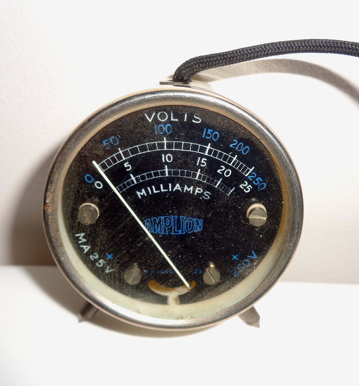 This 1920s/ 1930s Vintage Amplion Pocket Volt meter Model 33A is a wonderful little device. It has a white Ivorine back with chrome surround, and was made by Amplion. It comes with its original box, which has discoloured with age.