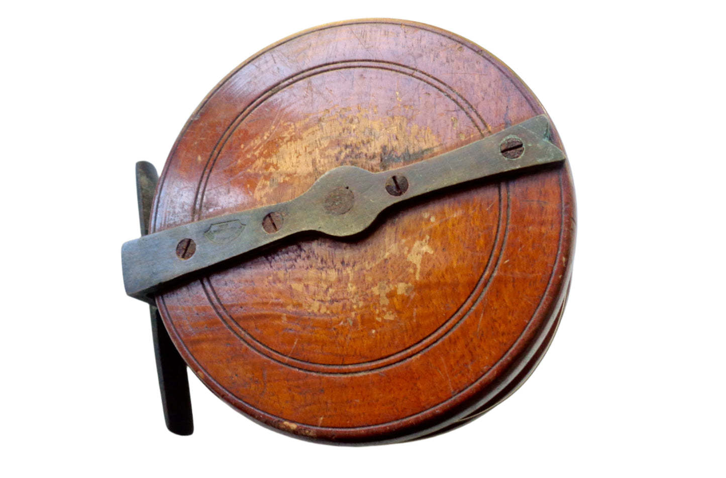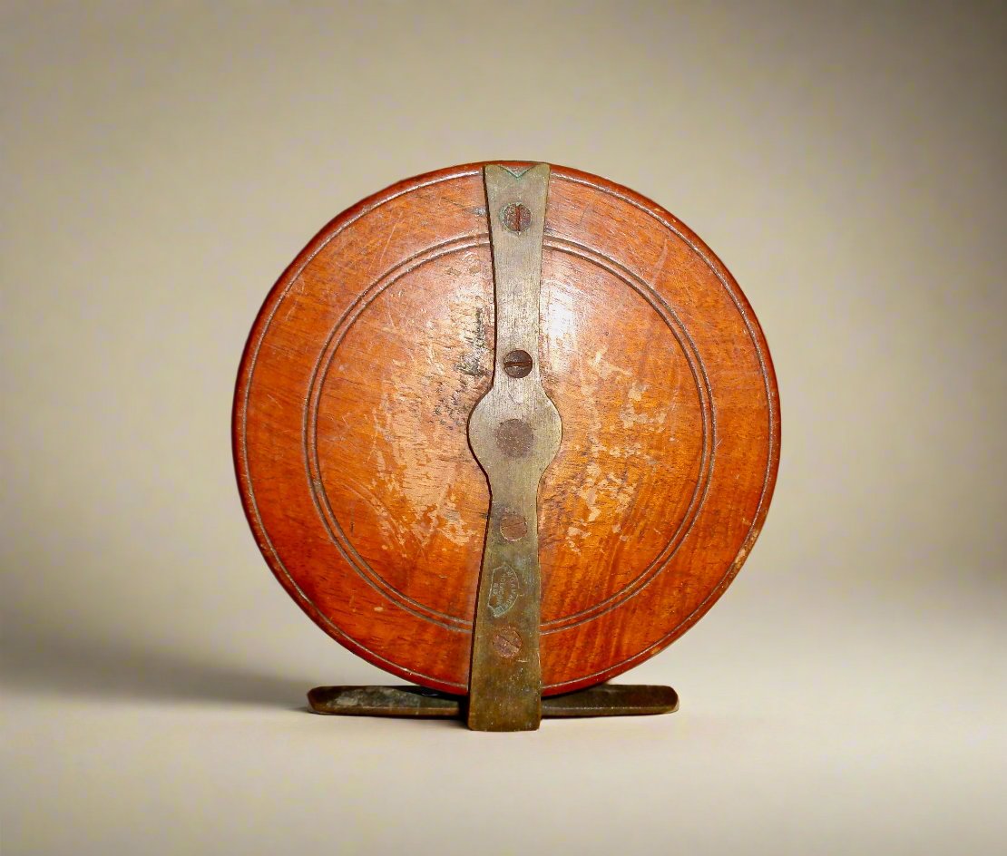 Vintage AW Gamage 4.5" Wood And Brass Centre Pin Fishing Reel With Line. I believe it was used for Fly Fishing.
