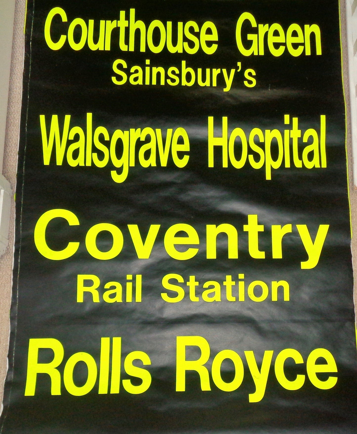 Vintage Bus Destination Blind West Midlands Coventry Transport