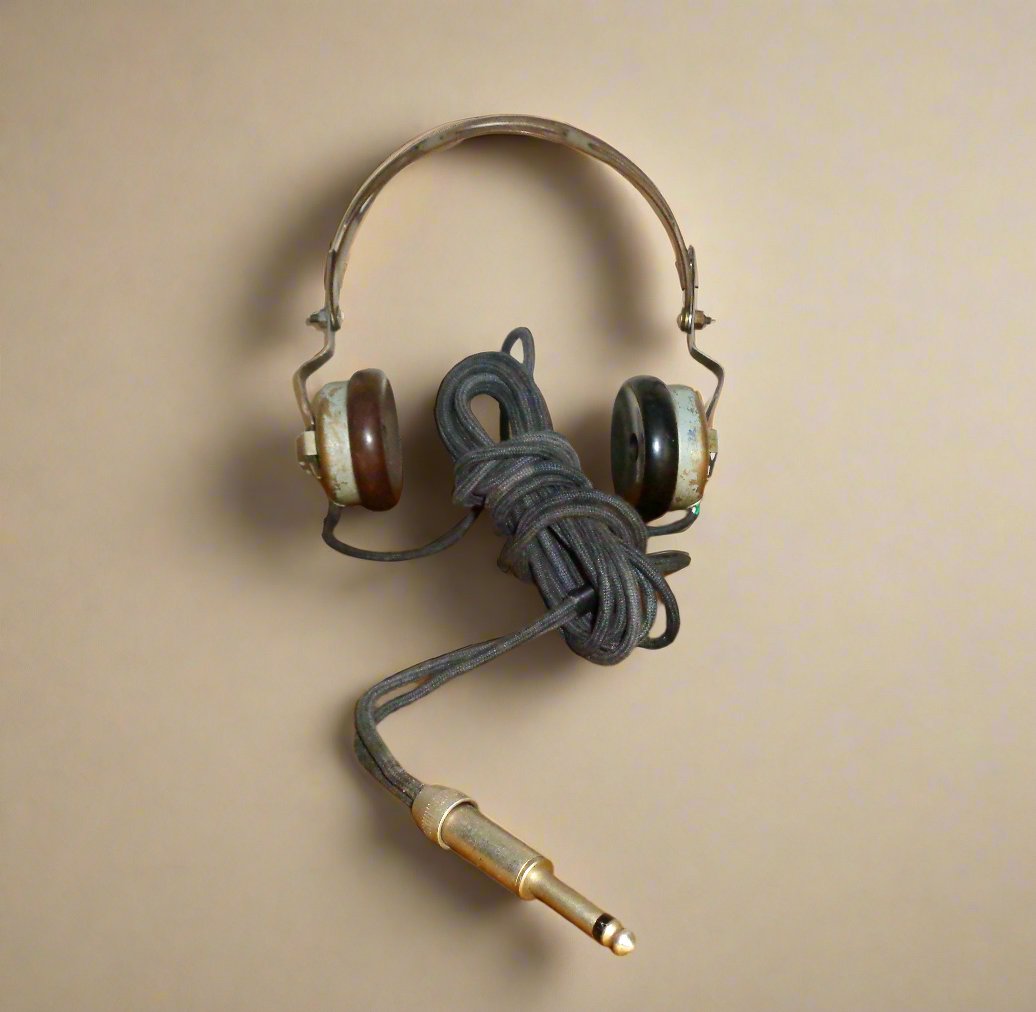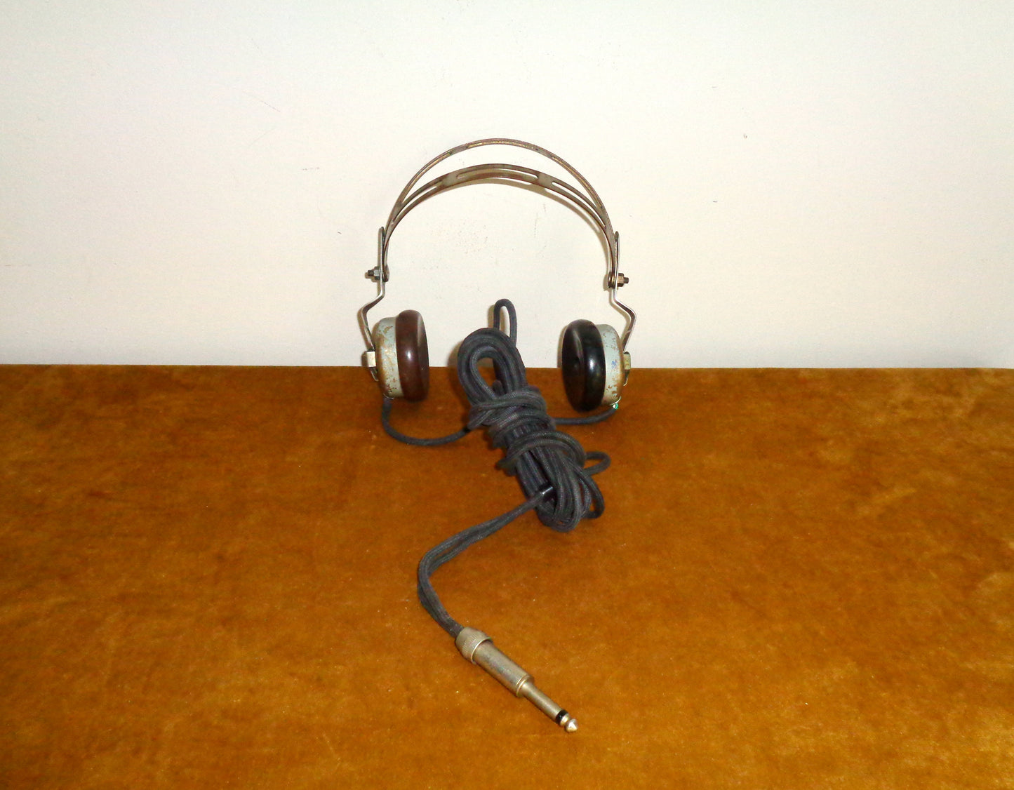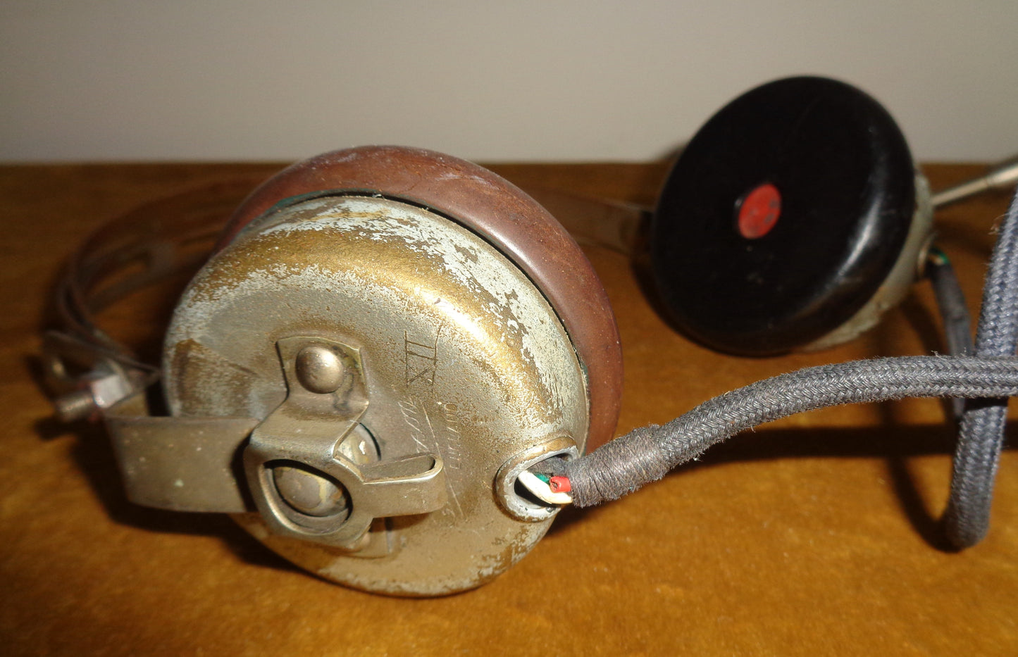 This pair of radio headphones are in fair working condition with some blemishes and loss of surface coating commensurate with age and use. A high resistance pair of headphones with a total impedance of approximately 4000 Ohms (2000/ear piece).