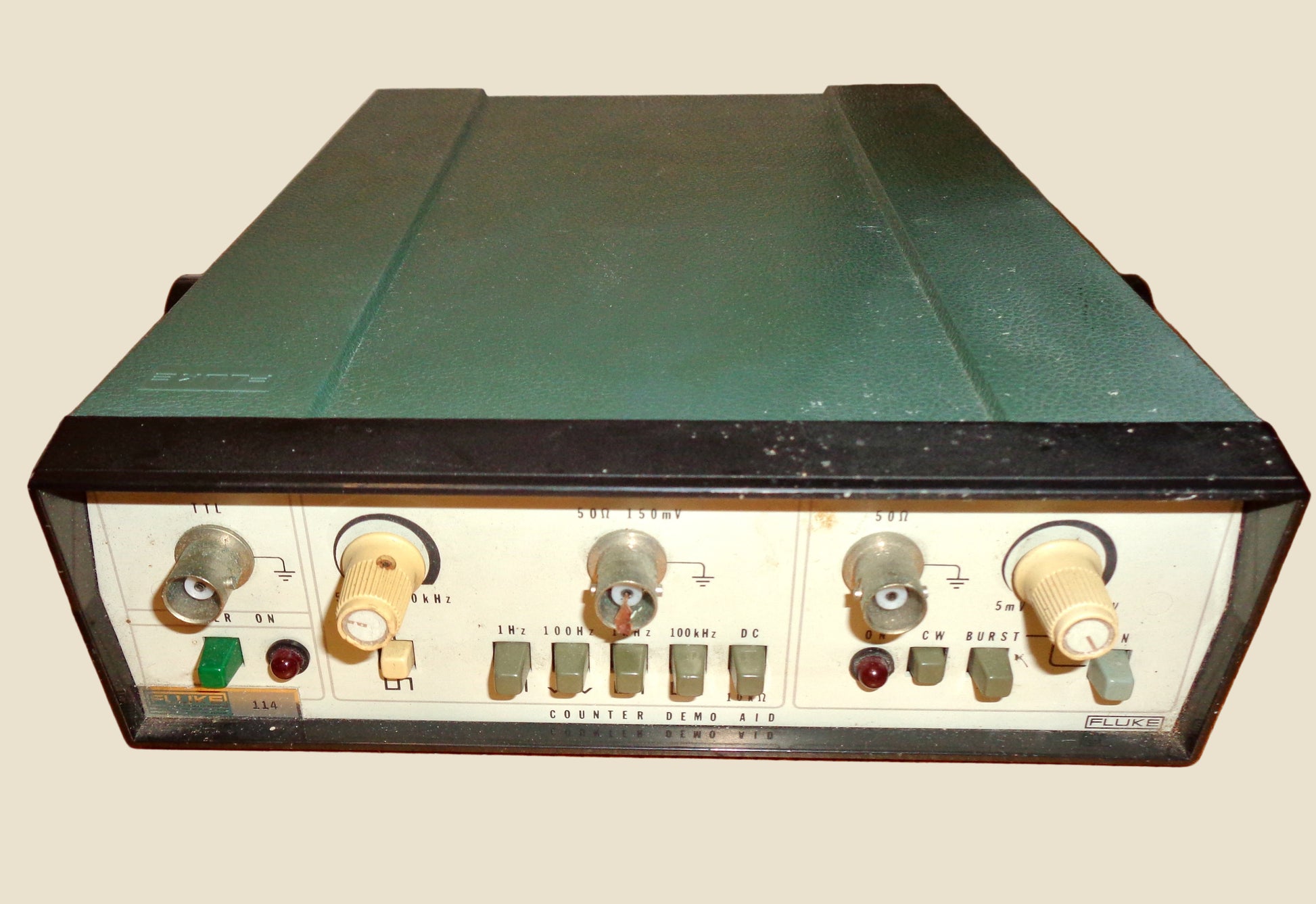 This small curio is a Vintage Fluke 114 Bench Multimeter Counter Demo Aid not to be confused with the modern 114 digital multimeter. It's not a true multimeter rather a piece of bench test equipment used by Fluke to demonstrate the functionality of their multimeter(s): there is no display window. It was probably designed to test the 114 multimeter.