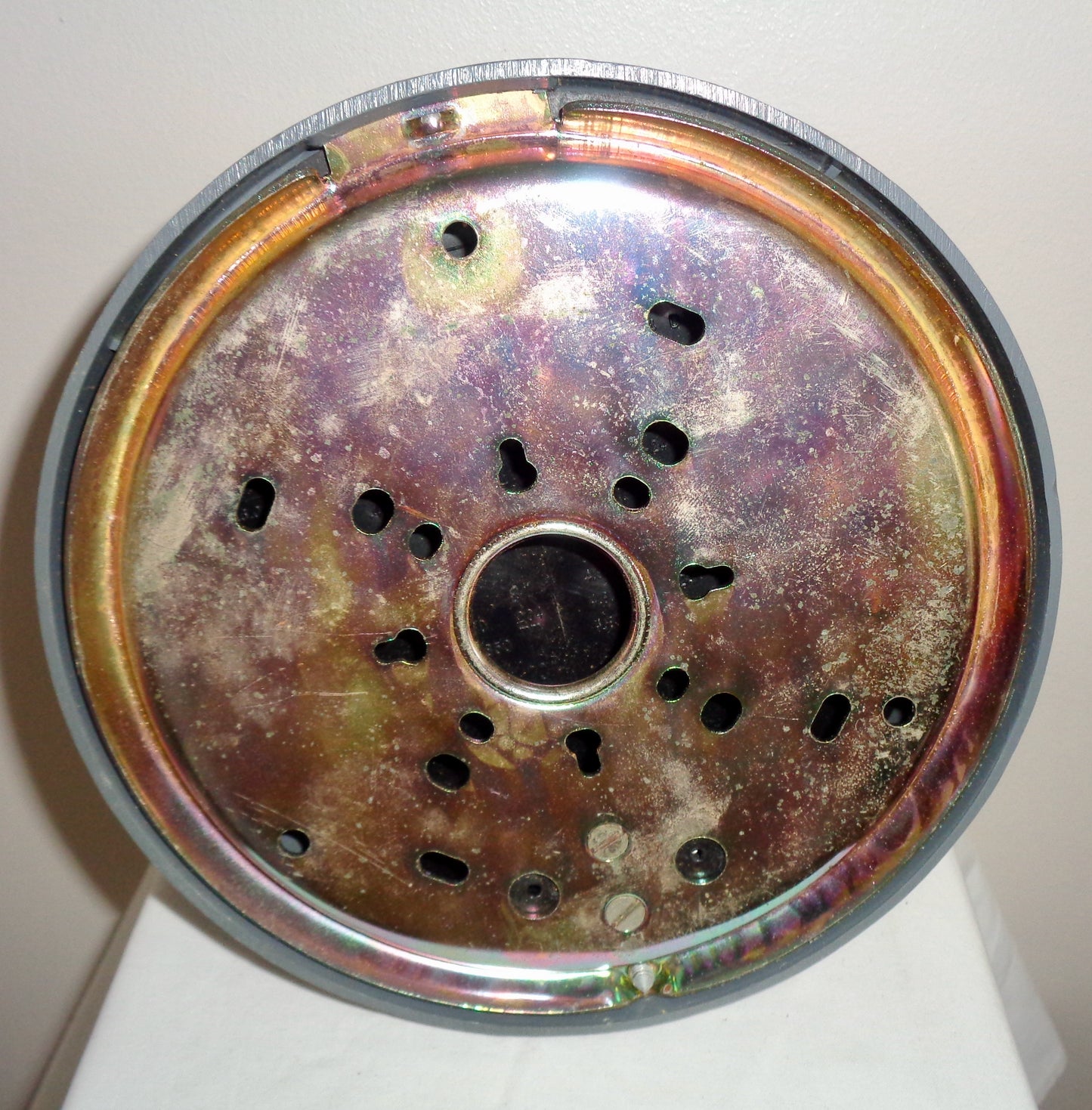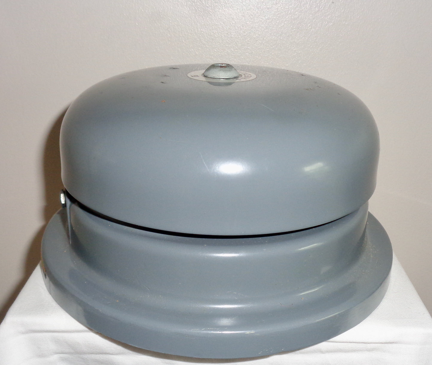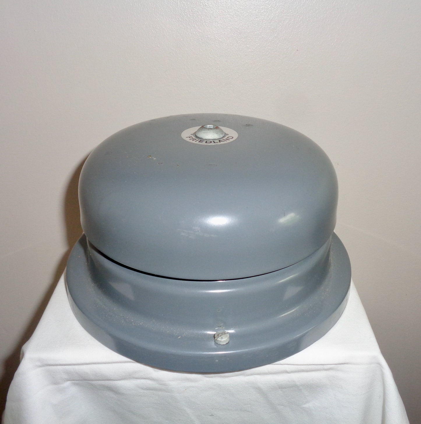 This is a very nice, dark grey, Vintage Friedland Industrial 6 Inch Metal Bell No. 36-37 200/250v 0.04 Amp. New Old Stock, it even comes with its original box and screws.