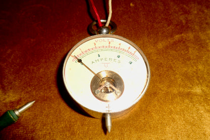 This 1920/30s Vintage Hand held Dual Scale Pocket Watch Voltmeter & Ammeter is a wonderful design.
