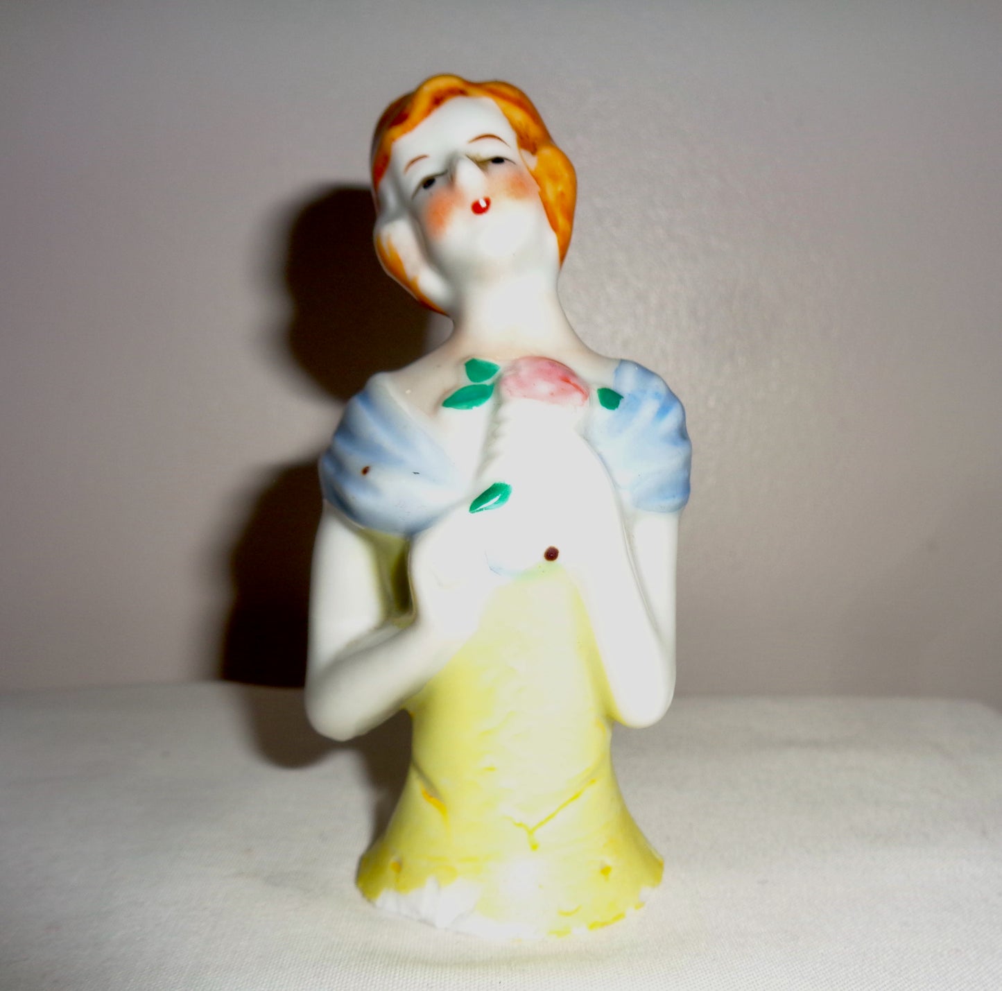 Vintage Japanese Half doll China Pin Cushion Lady (Yellow dress).