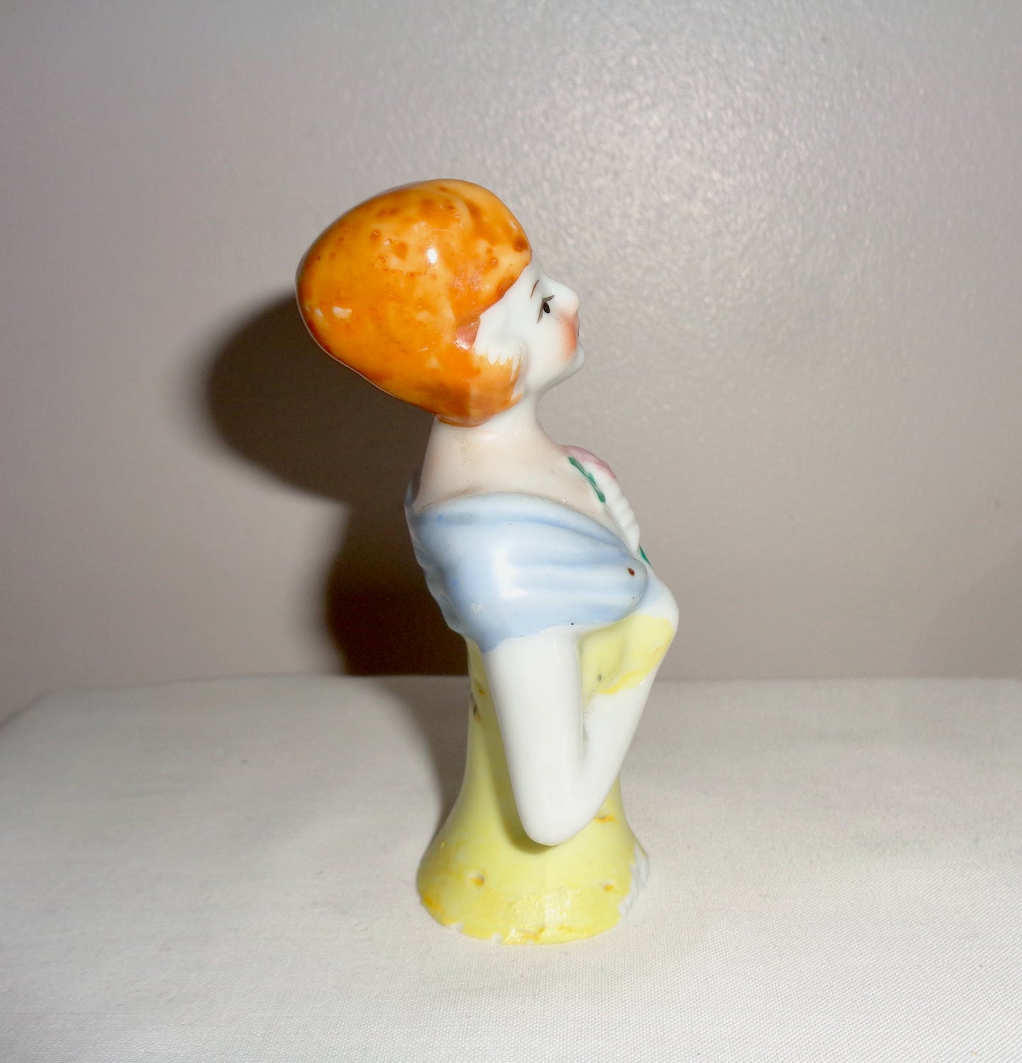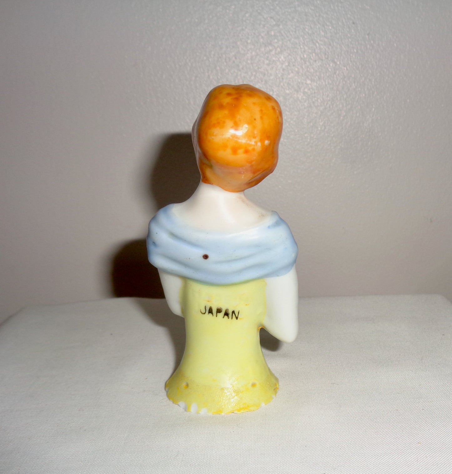 Vintage Japanese Half doll China Pin Cushion Lady (Yellow dress)