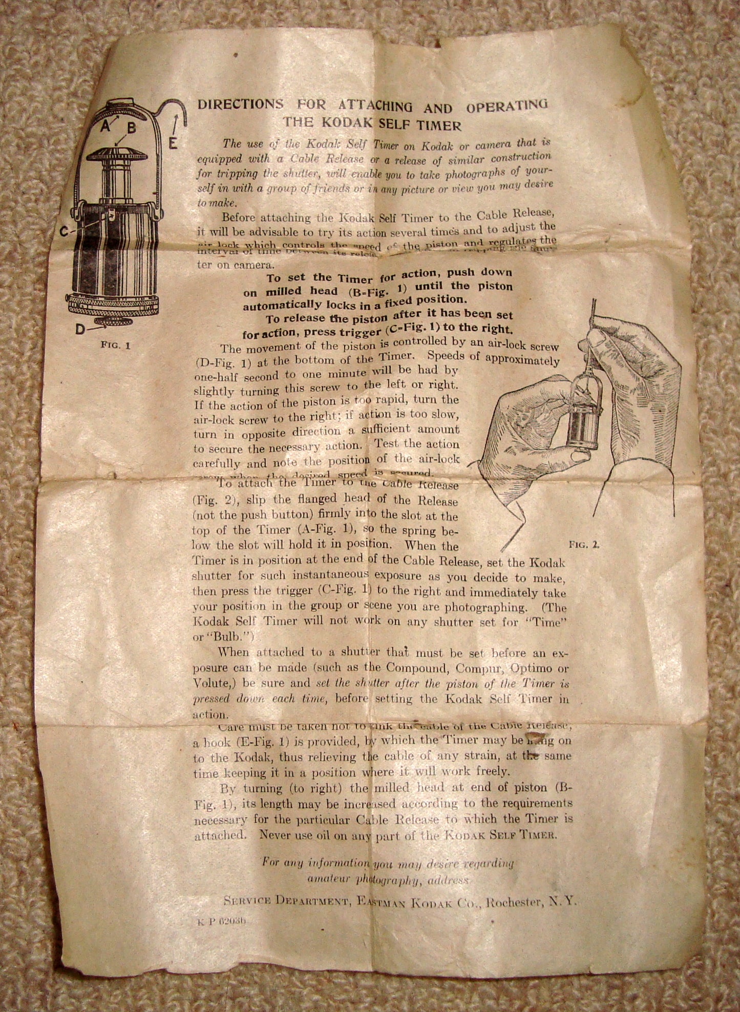 This Vintage Kodak Camera Pneumatic Self Timer dates to approximately 1918 or the early 1920s, and is now an antique! Photography was becoming more popular and this small pneumatic device allowed delayed action when attached to a camera shutter release.