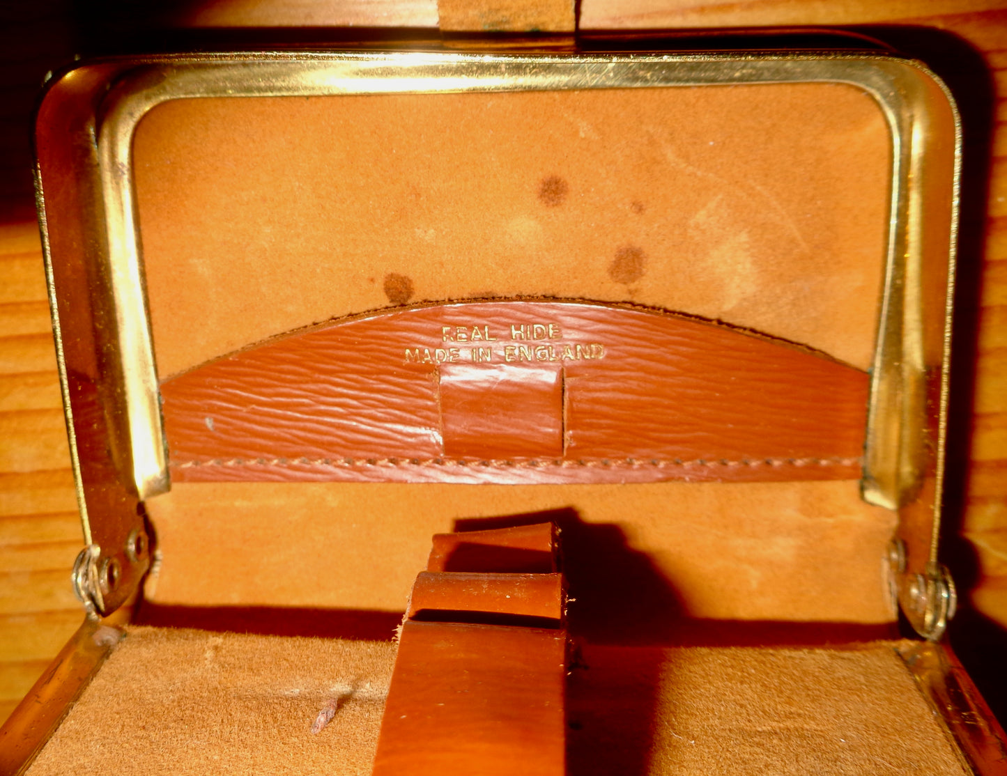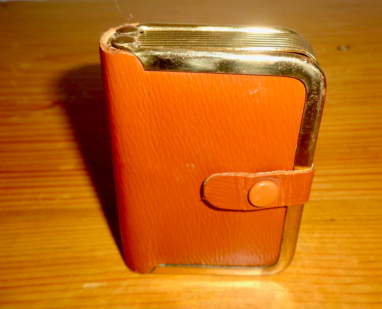 The case closes via a press stud and fits snugly in the hand or pocket. It has few marks and blemishes but is in pretty good condition for its age.