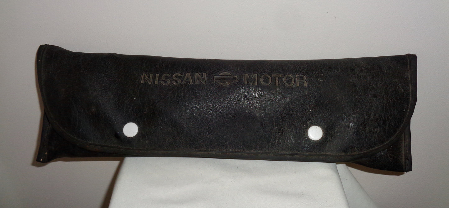 This is a very nice automobilia collectible in the shape of a 1960s/70s Vintage Nissan Motor Tool Kit Bag With Tools.